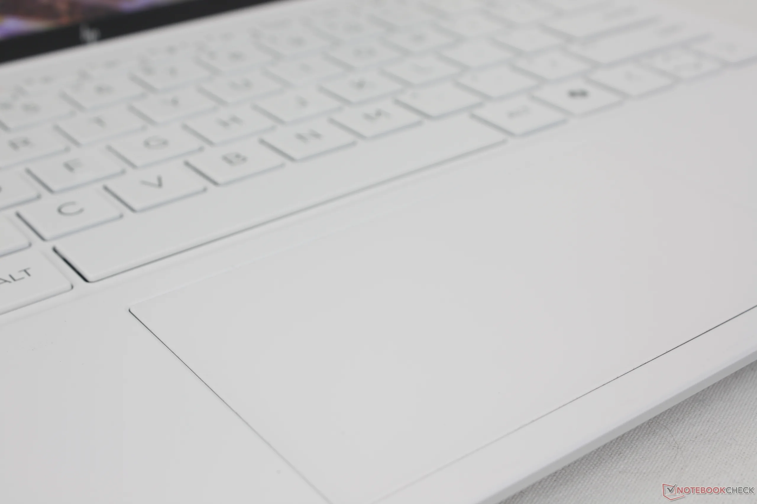 Le pavé numérique de 11,5 x 6,5 cm est sensiblement plus petit que celui du Dragonfly G4 (12 x 8 cm) et du ZenBook S 13 (13 x 8,1 cm). Bien que le contrôle du curseur soit fluide et fiable, la petite surface donne l'impression d'être à l'étroit et le retour d'information lorsque l'on clique n'est pas très satisfaisant.