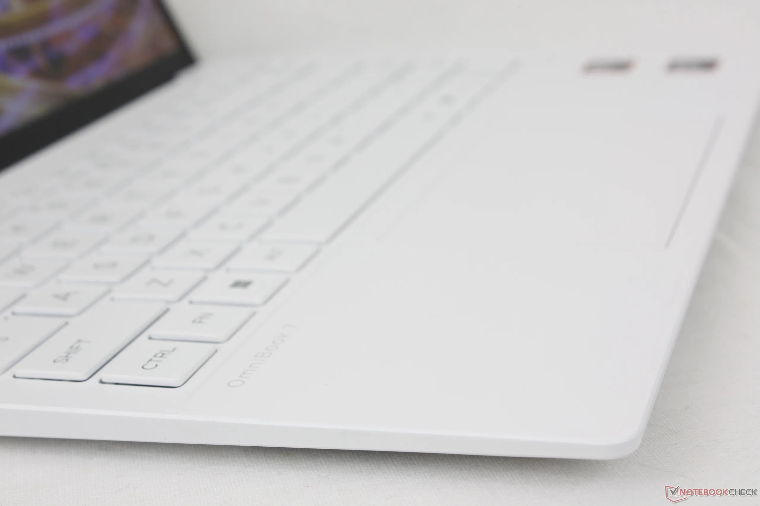 Un inconvénient notable par rapport aux ordinateurs portables ultra-légers de 1 kg comme le LG Gram, Toshiba Portegesamsung Galaxy Book, ou Asus ZenBook S 13 est que leurs bases et couvercles ont tendance à fléchir beaucoup plus facilement que les subnotebooks de poids "normal" comme les modèles Dell XPS, Lenovo Yoga 9, ou HP Spectre. À notre grande surprise, la base de l'OmniBook 7 Aero 13 est assez rigide, ce qui nous a permis d'avoir une première impression plus positive que prévu. Le couvercle est légèrement plus sensible à la flexion, mais c'est encore une fois beaucoup moins que sur les modèles concurrents comme le LG Gram ou le Galaxy Book.