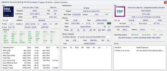 | HP Omnibook 5 16-af1037nr Intel Core Ultra 7 255U ⎘ Intel Graphics 4-Core iGPU (Meteor / Arrow Lake) ⎘ 16 Go Mémoire | Amazon: Prix de liste: 660 USD | 1.7 kg | 18.6 mm | 16.00" 1920x1200 142 PPI IPS | |