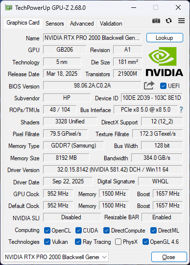 | HP ZBook X G1i 16 Intel Core Ultra 7 265H, Nvidia RTX PRO 2000 Blackwell Generation Laptop | HP ZBook Power 16 G11 A AMD Ryzen 7 8845HS, NVIDIA RTX 2000 Ada Generation Laptop | HP ZBook Studio 16 G11 Intel Core Ultra 9 185H, NVIDIA RTX 3000 Ada Generation Laptop | Lenovo ThinkPad P16 Gen 2 Intel Core i7-14700HX, NVIDIA RTX 4000 Ada Generation Laptop | Dell Pro Max 16 Plus Intel Core Ultra 9 285HX, Nvidia RTX PRO 5000 Blackwell Generation Laptop | Dell Precision 5690 Intel Core Ultra 9 185H, Nvidia RTX 5000 Ada Generation Laptop | |