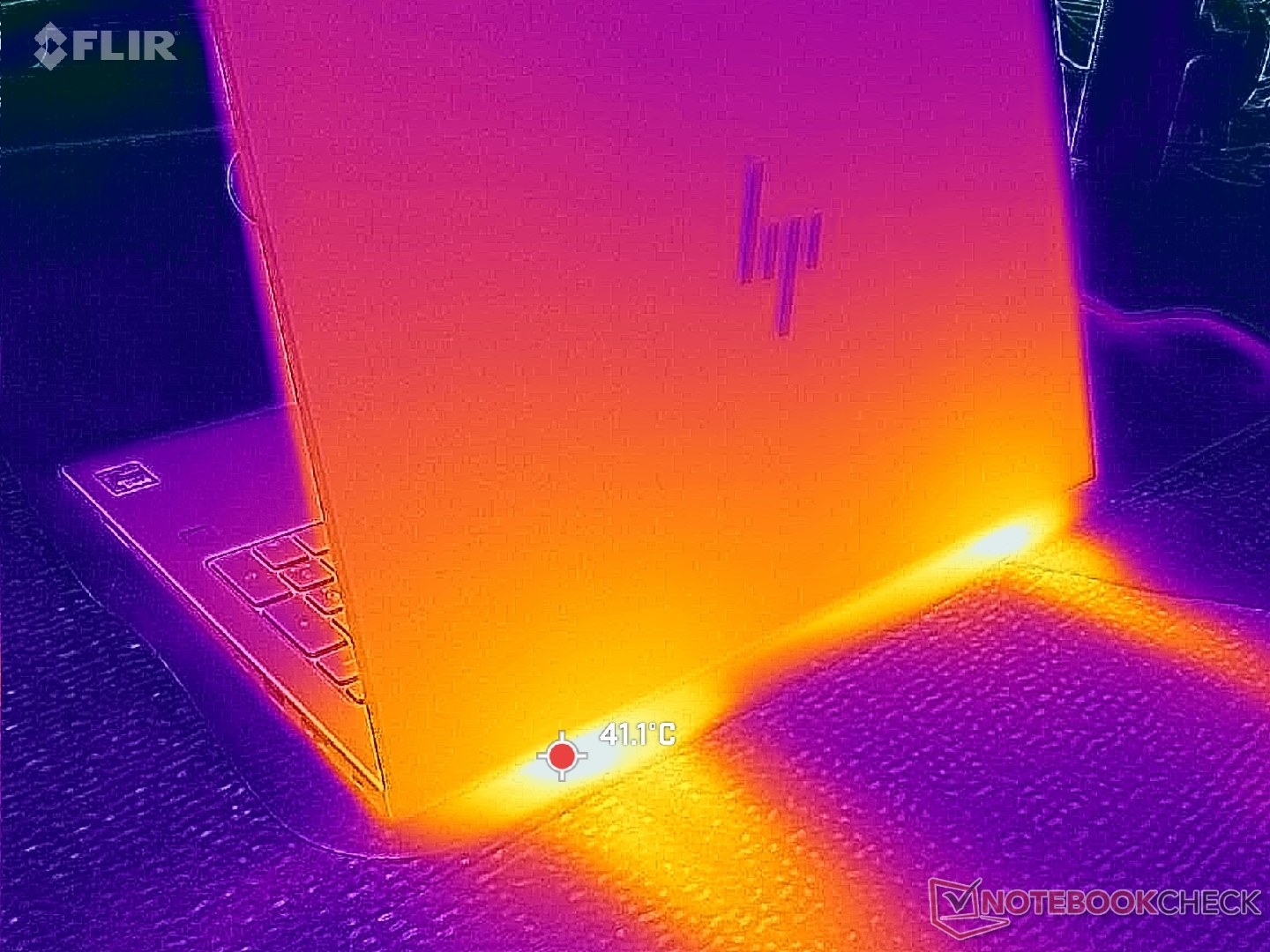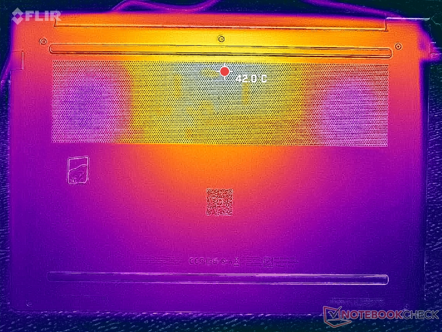 L'évolution de la température de surface est la plus chaude vers le centre, où elle peut atteindre plus de 36 °C lorsque l'ordinateur est soumis à des charges exigeantes, ce qui est nettement plus froid que ce que nous avons enregistré sur le ThinkPad P16 Gen 2 ou Dell Precision 5690.