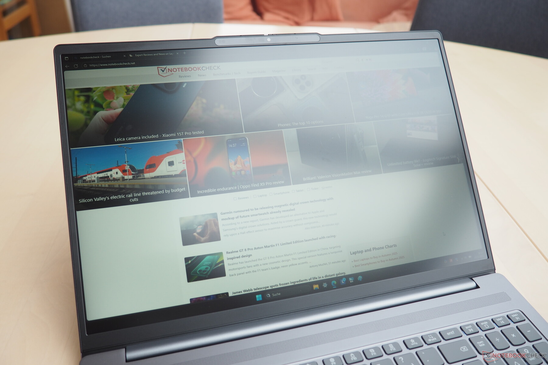 En termes de qualité de construction, l'IdeaPad Slim 5 16AKP10 fait une impression solide à très solide. Les périphériques d'entrée sont convaincants, et la qualité du châssis ainsi que le design général se distinguent positivement. La sélection de ports n'est pas particulièrement moderne, bien que Lenovo conserve au moins un lecteur de carte microSD, que de nombreux fabricants ont maintenant entièrement supprimé. L'écran 16:10 nous laisse un sentiment mitigé. Le rapport de contraste est tout à fait respectable pour un écran IPS, mais la gamme de couleurs est décevante, ce qui affecte particulièrement la lecture de photos et de vidéos. Nous avons également été quelque peu déçus par les performances de la Ryzen AI 5 330, ou plus précisément de la Radeon 820M intégrée. Les spécifications indiquent clairement que cette configuration n'est pas conçue pour des performances élevées, et pourtant les ordinateurs portables concurrents avec des prix similaires ou à peine plus élevés prennent une avance notable dans certains scénarios (nous y reviendrons plus tard).
