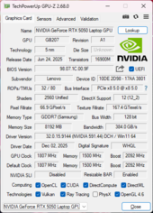 Pire encore, opter pour la configuration RTX 5050 ne signifie pas nécessairement une plus grande autonomie de la batterie ou des ventilateurs plus silencieux lorsque vous jouez ou exécutez des charges lourdes, en dépit de ses performances plus lentes. Le Core Ultra 9 285H n'offre même pas beaucoup d'avantages par rapport au Core Ultra 7 255H moins cher, mais les SKUs avec ce dernier CPU sont malheureusement plus difficiles à trouver aux Etats-Unis. Les températures de fonctionnement peuvent être plus basses, mais ce léger avantage n'est rien comparé à la longue liste d'inconvénients de l'option RTX 5060, plus intéressante.