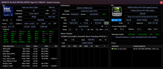 | Lenovo Yoga Pro 9 16IAH10 RTX 5050 (Angelbird AV Pro V60) | |