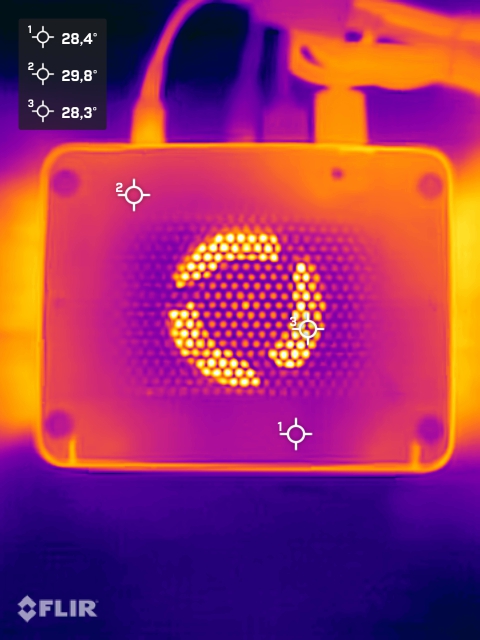 (±) En utilisation inactive, la température moyenne du côté supérieur est de 33.7 °C / 93 F, par rapport à la moyenne du dispositif de 32.5 °C / 91 F.