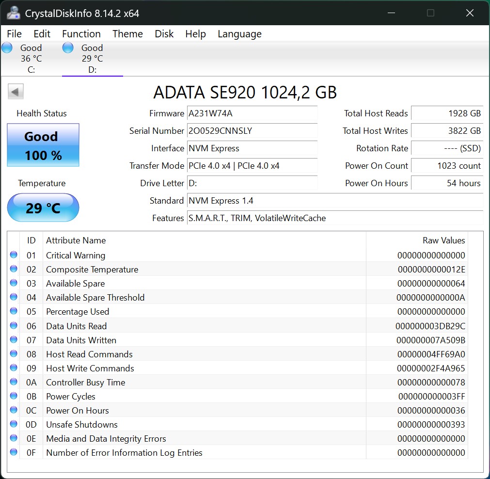 Performance Thunderbolt 4 (ADATA SE920)