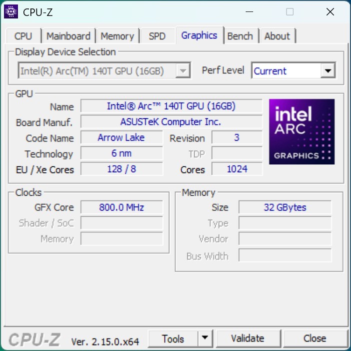 L'Intel Arc Graphics 140T fonctionne dans l'Asus NUC 15 Pro+ et obtient d'excellents résultats dans les benchmarks. La limite de puissance généreuse du processeur se traduit par un net avantage en termes de performances par rapport au Geekom Mini IT15. Dans les applications professionnelles, l'iGPU est cependant en retrait par rapport aux solutions AMD actuelles. Les jeux occasionnels sont possibles, à condition que vous soyez prêt à accepter des détails graphiques réduits.