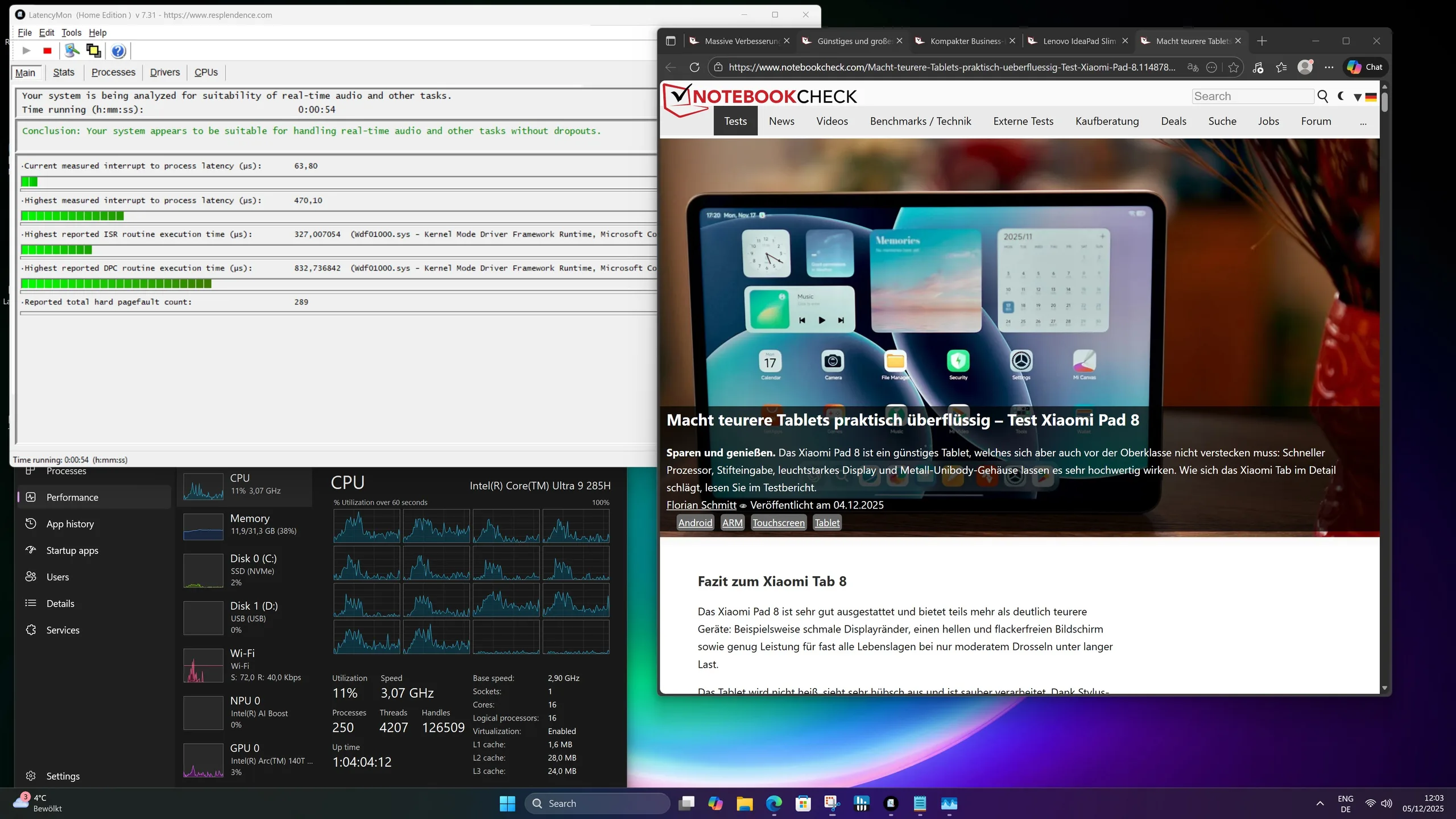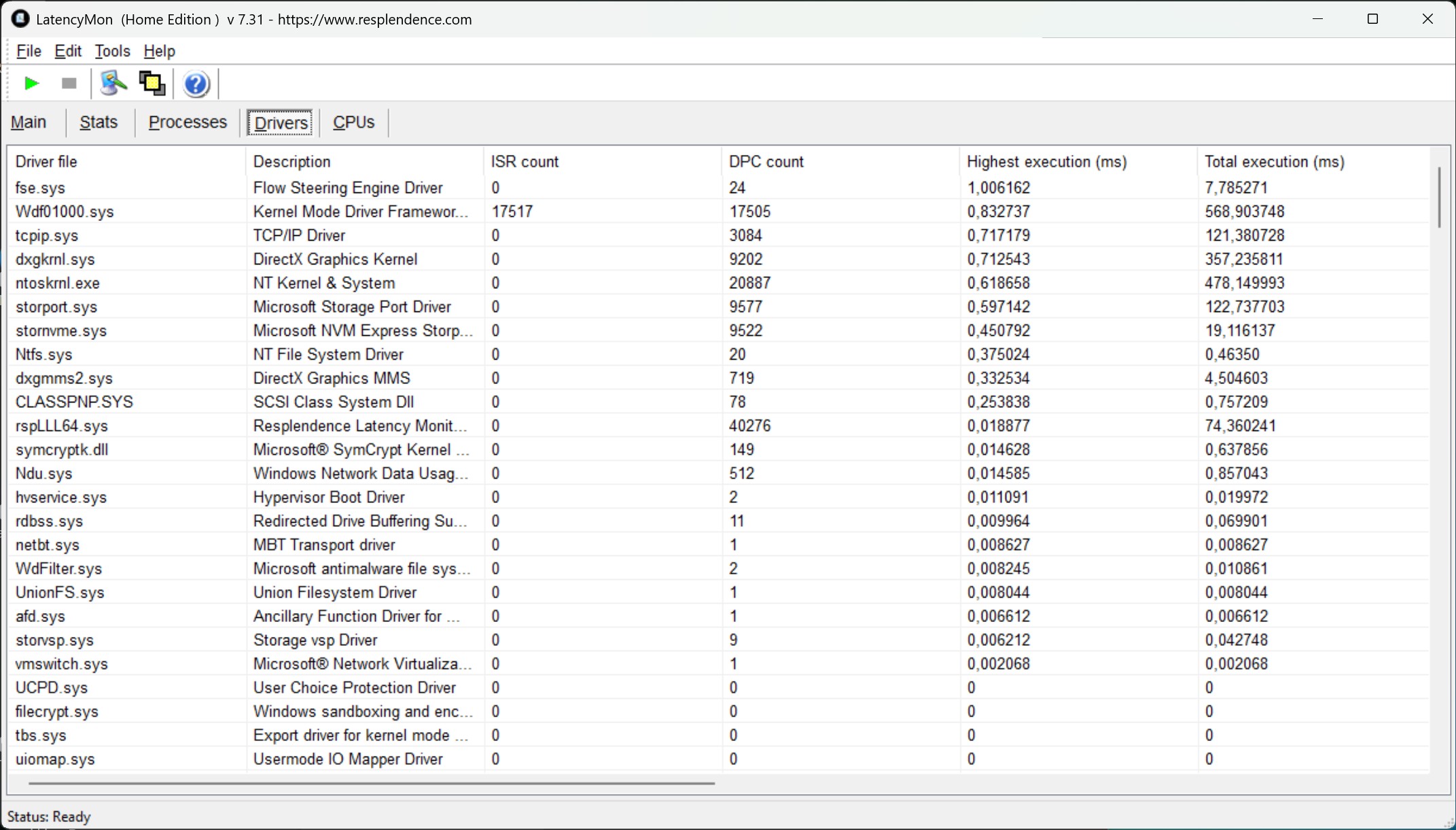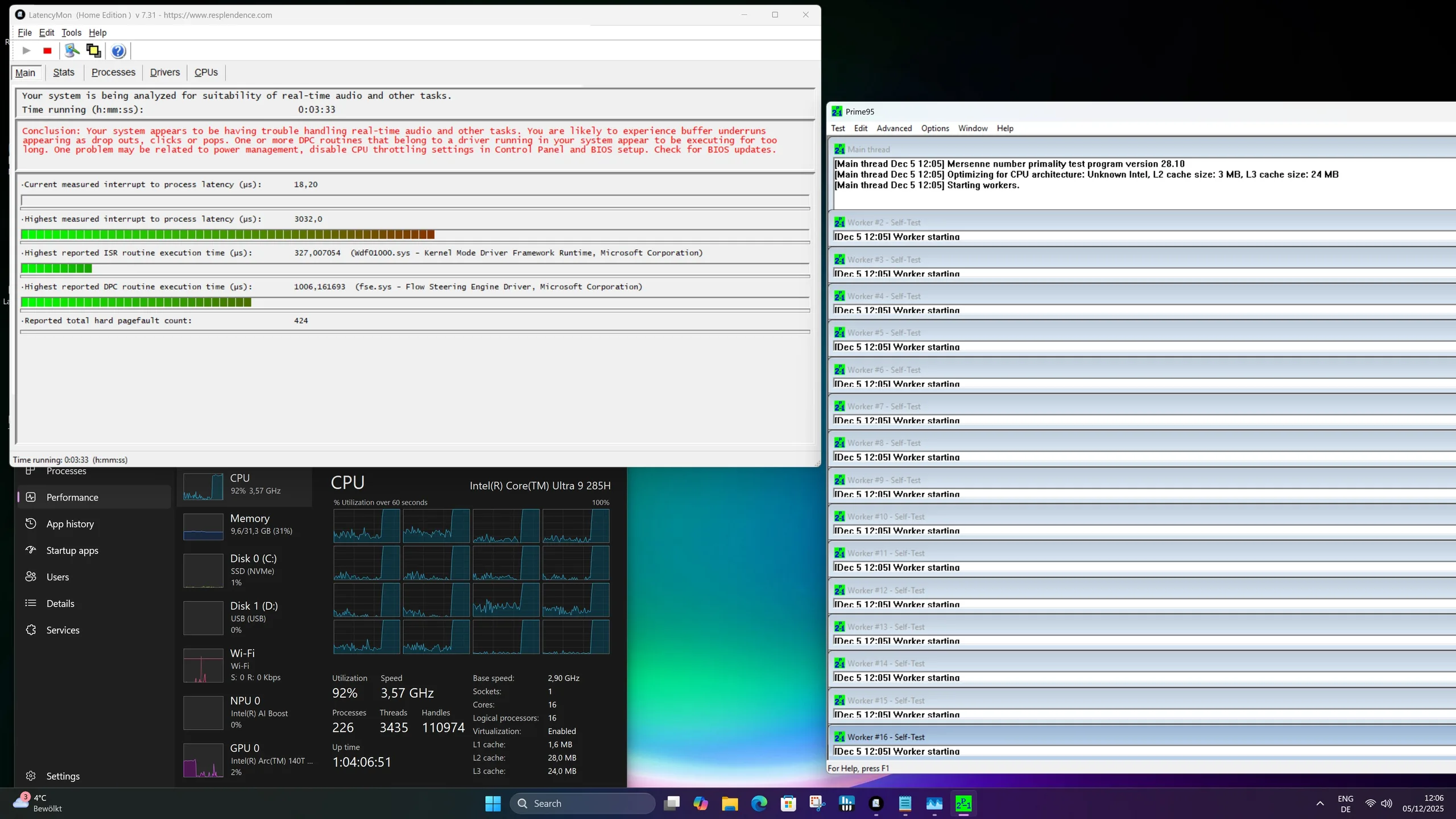 | DPC Latencies / LatencyMon - interrupt to process latency (max), Web, Youtube, Prime95 | |