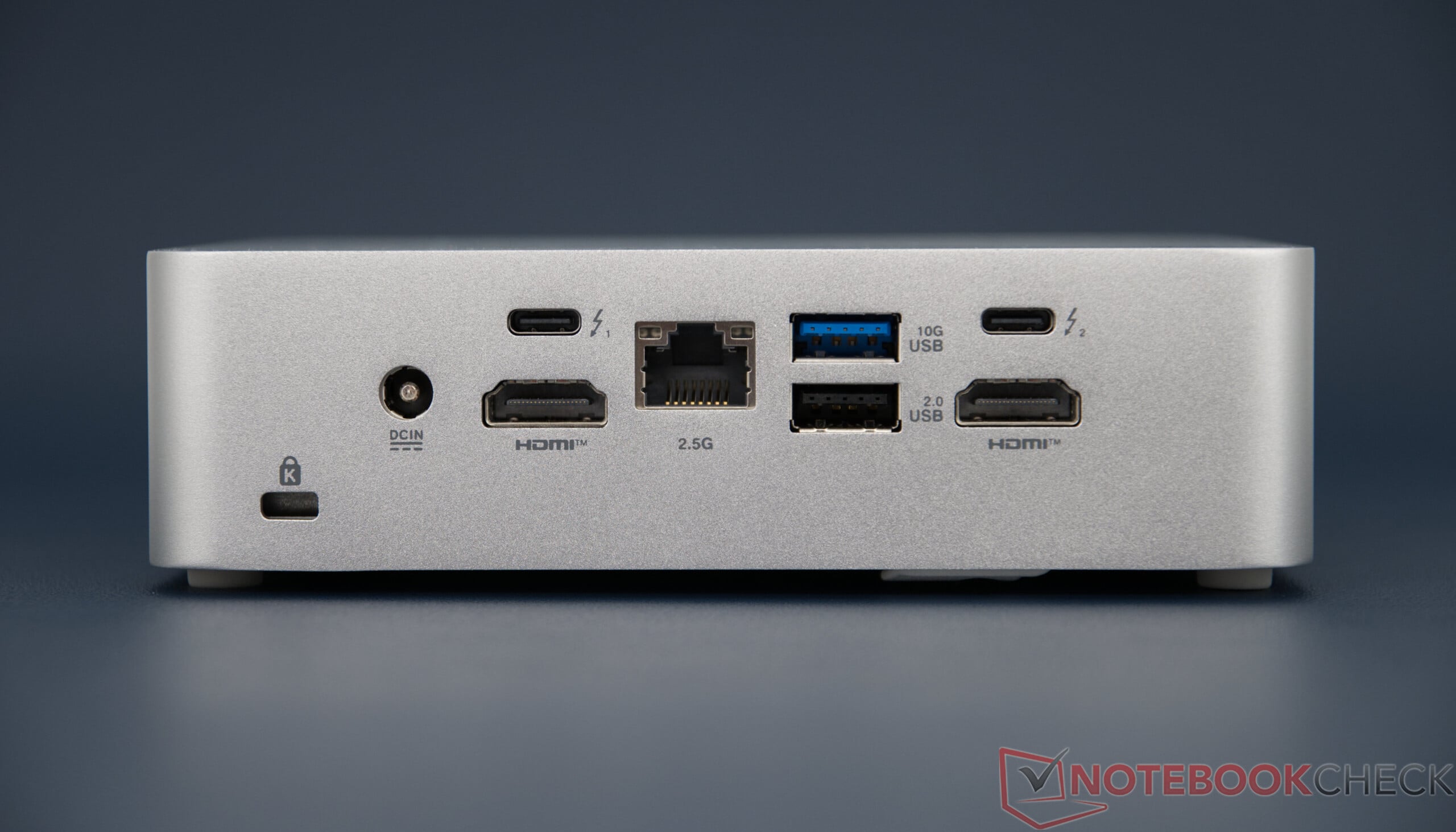 L'Asus NUC 15 Pro+ offre une bonne sélection de ports externes. Au total, sept ports USB sont disponibles - quatre USB-A et trois USB-C, deux ports USB-C prenant en charge Thunderbolt 4 et élargissant ainsi considérablement l'éventail des fonctions. L'offre est complétée par deux sorties HDMI, un port LAN 2,5 Gbit et un Wi-Fi rapide. La répartition des ports est claire et pratique.