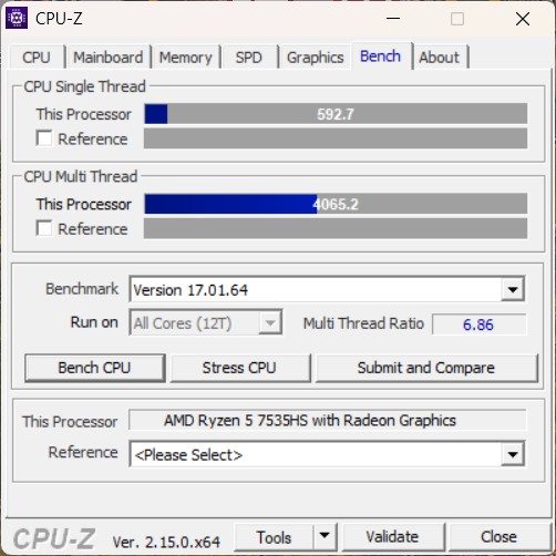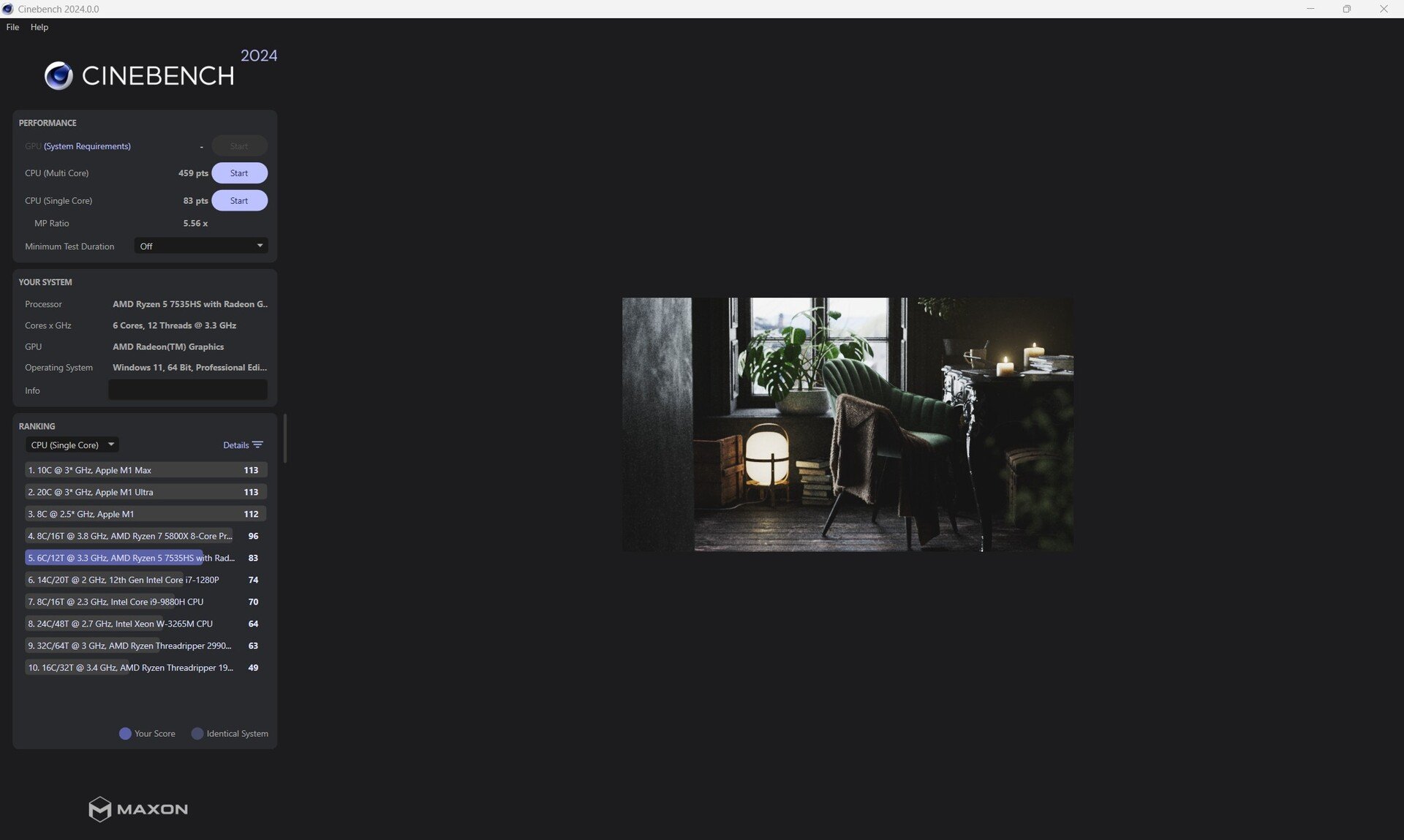 Le Ninkear S14 utilise l'AMD Ryzen 5 7535HS, un puissant processeur à six cœurs avec douze threads qui atteint des vitesses d'horloge allant jusqu'à 4,55 GHz. Le processeur offre donc des performances suffisantes pour les applications bureautiques typiques, le multimédia et le multitâche léger. Toutefois, à pleine charge, les performances sont quelque peu limitées par la puissance maximale du système, ce qui se traduit par une légère baisse des performances par rapport à des appareils mieux configurés.