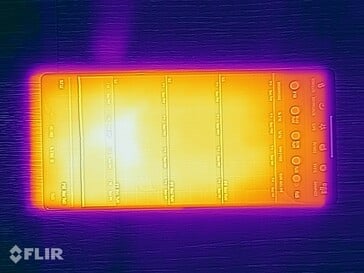 (-) La température maximale du côté supérieur est de 55.4 °C / 132 F, par rapport à la moyenne de 35.2 °C / 95 F, allant de 21.9 à 247 °C pour la classe Smartphone.