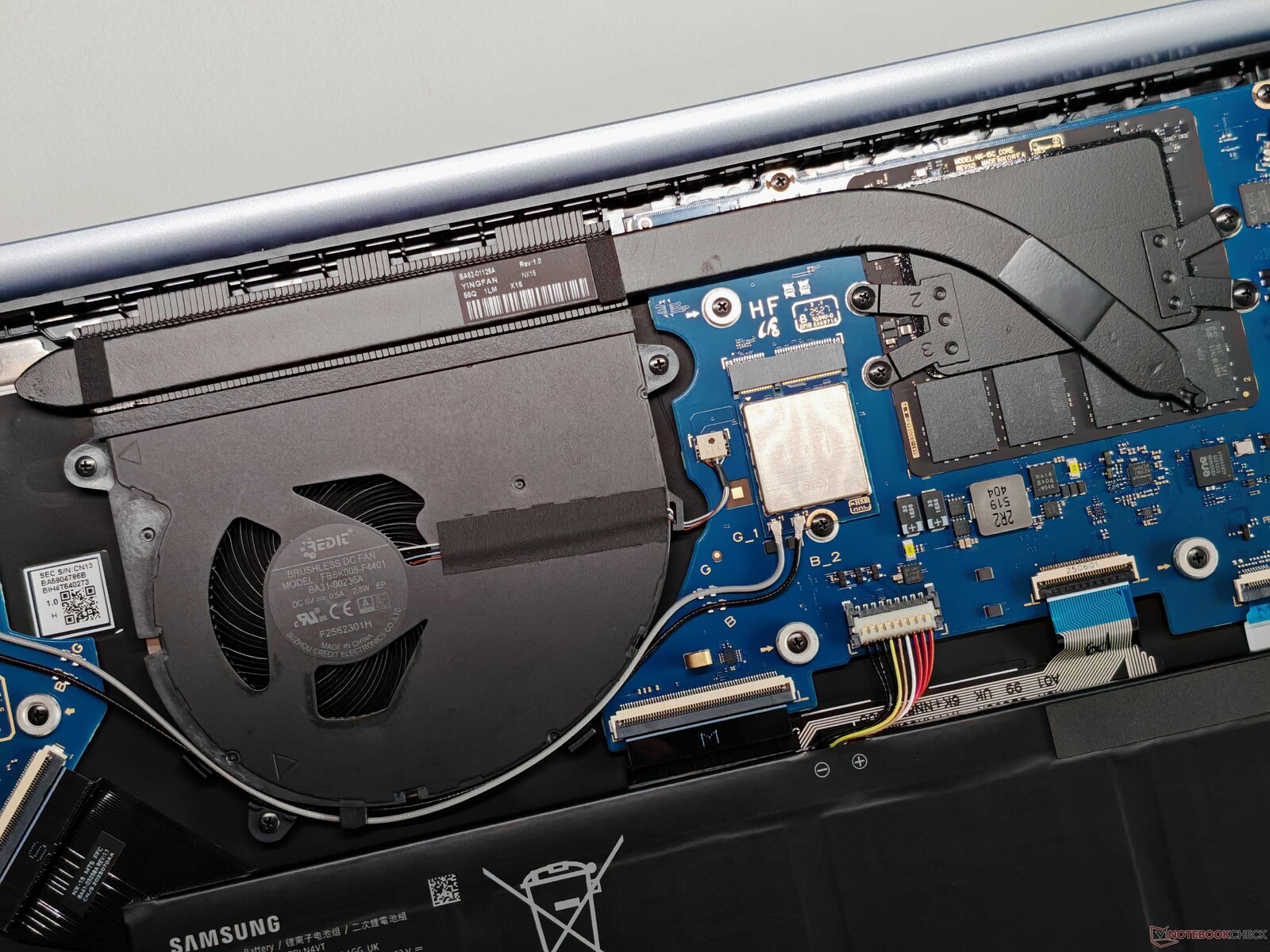 L'écran est un écran IPS très simple, mais peu gourmand en énergie. En fonction de la luminosité, notre test WLAN nous a permis d'obtenir une autonomie de 13 à 18 heures. Le deuxième problème majeur est la configuration de la mémoire, Samsung ayant décidé une fois de plus de ne souder que de la mémoire UFS au lieu d'installer un SSD M.2, comme c'est le cas avec les modèles Intel. Dans notre appareil de test, l'utilisateur ne dispose que de 160 Go.