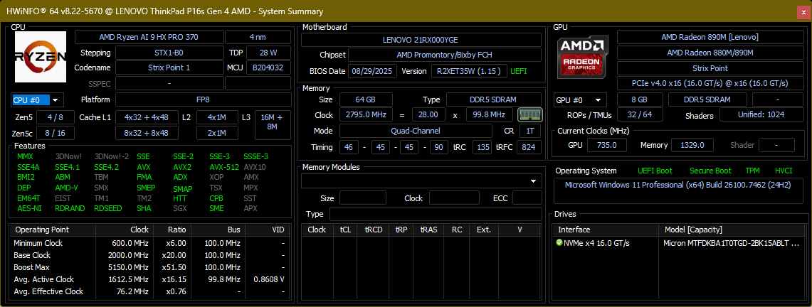 - Spécifications : Ryzen AI 9 Pro HX 370 dans un ThinkPad 16 pouces