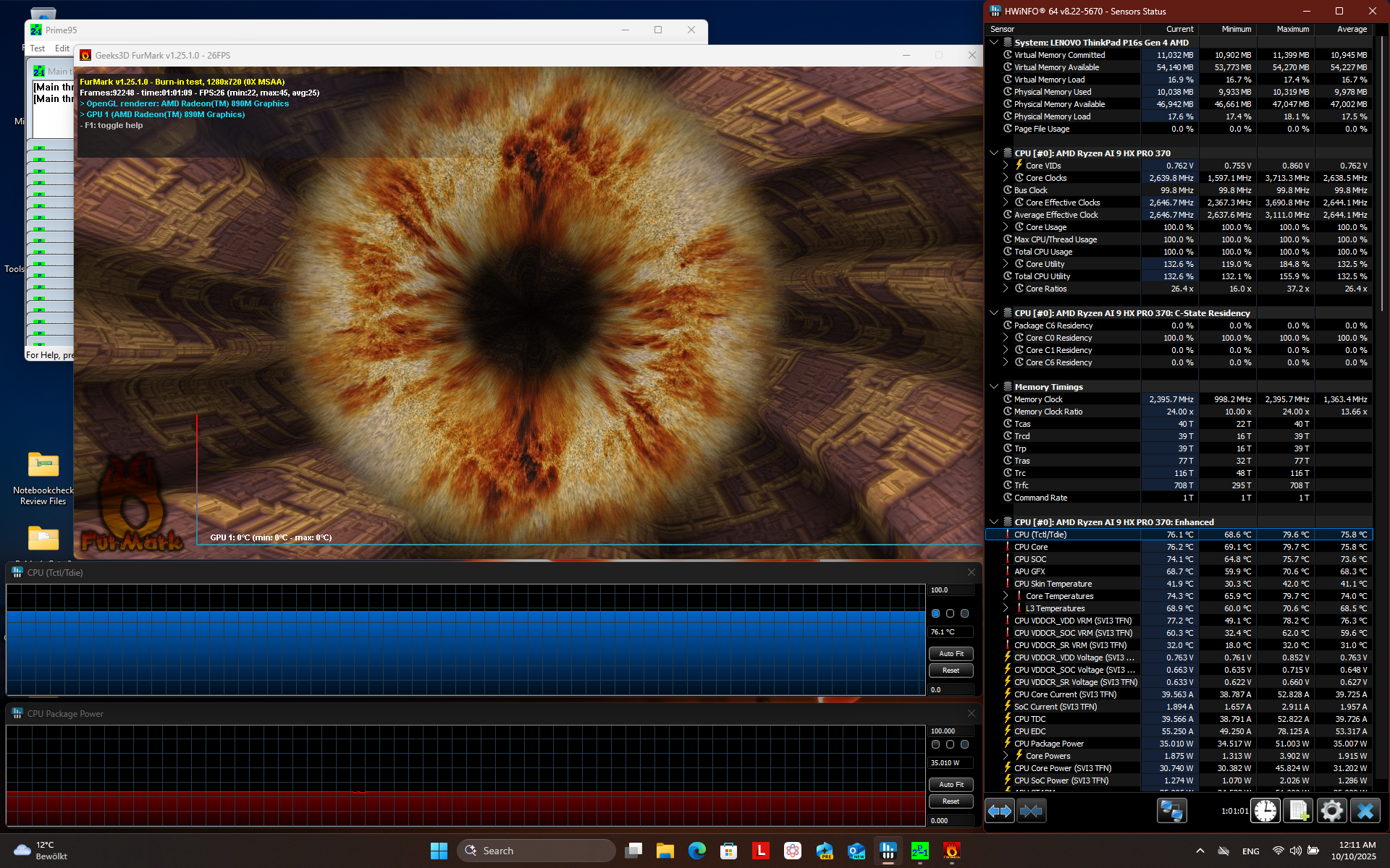 Il n'y a pas de ralentissement pendant le test de stress, ce qui signifie que Lenovo donne la priorité à une performance stable plutôt qu'à des températures plus basses.