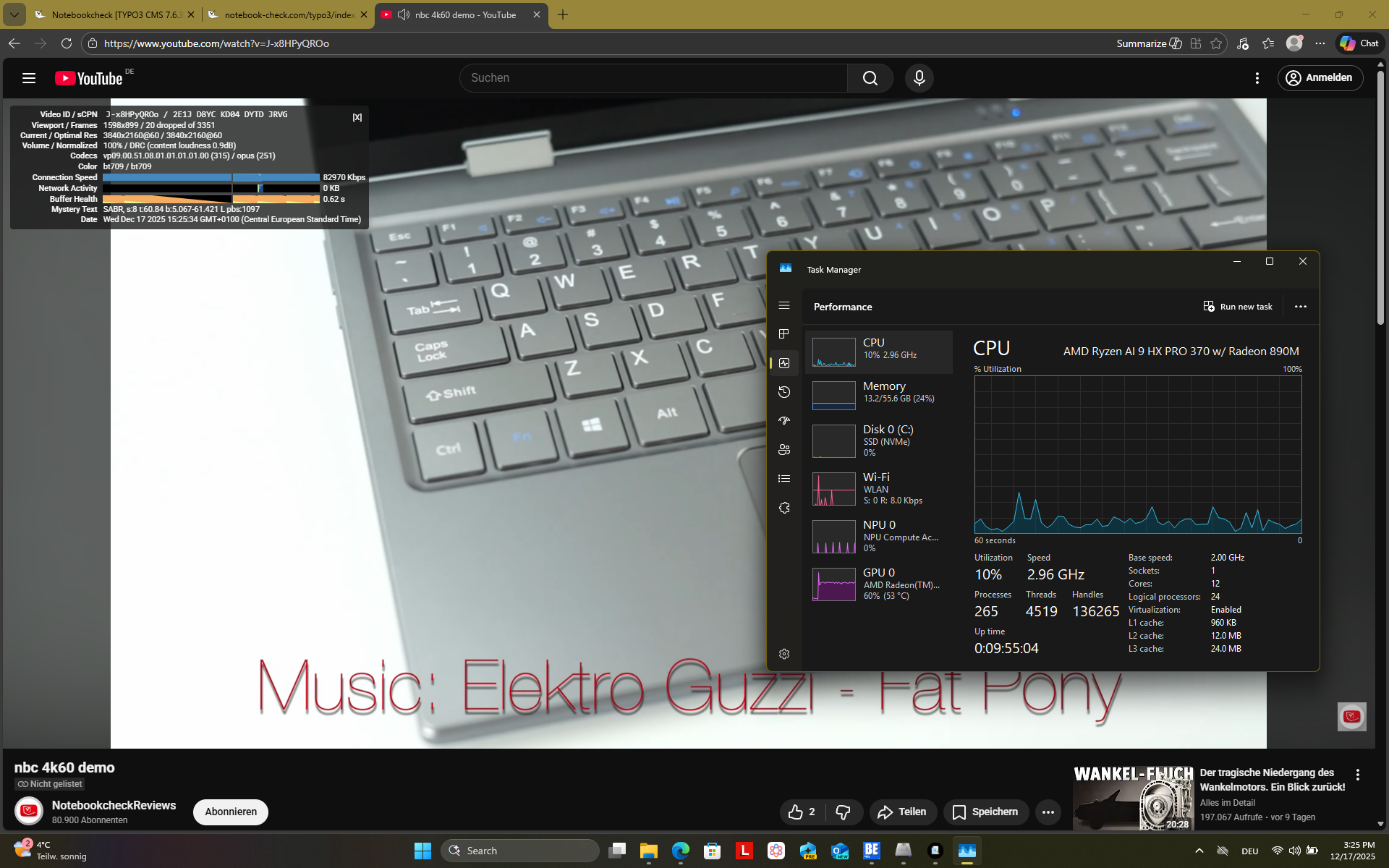 L'audio n'est pas le point fort de la station de travail Lenovo. Dans l'ensemble, les haut-parleurs orientés vers le bas du ThinkPad P14s G4 n'offrent qu'un niveau de volume moyen et manquent de basses.