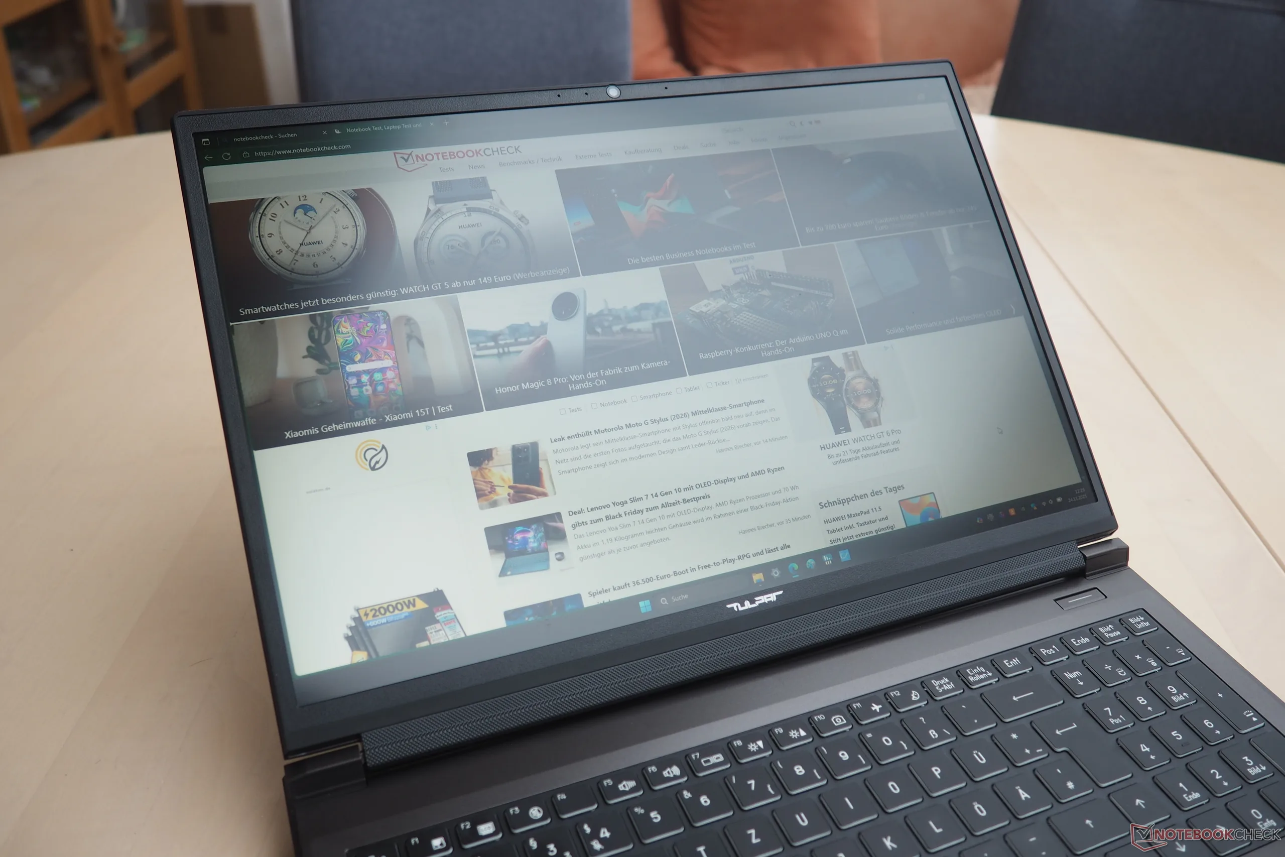 Si vous êtes à la recherche d'un ordinateur portable de jeu actuel dans la gamme des 1000 euros, le T6 V3.5 de Tulpar Notebook pourrait vous convenir. Avec la RTX 5060 ( GeForce ), le modèle 16 pouces offre un solide GPU de milieu de gamme associé à un Core i7-14700HX rapide (qui, cependant, perd un peu de performance en charge soutenue). Notre unité de test comprenait également 32 Go de RAM DDR5 (2×16 Go) et un SSD NVMe de 1 To.