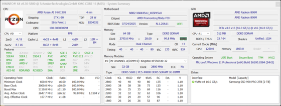 SCHENKER XMG Core 16 M25 AMD Ryzen AI 9 HX 370 ⎘ Nvidia GeForce RTX 5070 Laptop ⎘ 64 Go Mémoire, 2048 Go SSD | Prix de liste: 2100€ | 2.1 kg | 23 mm | 16.00" 2560x1600 189 PPI IPS | |