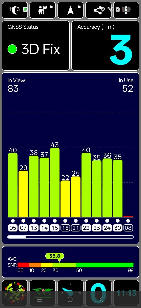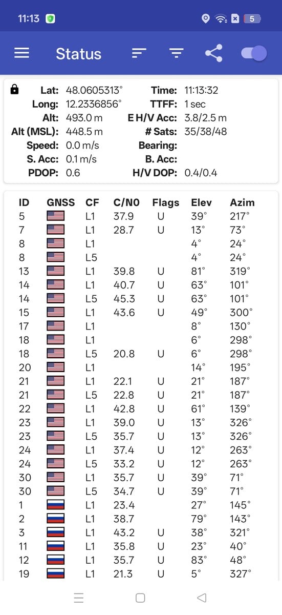 En extérieur, le OnePlus 15 nous a rapidement localisés à quelques mètres près. Tous les principaux systèmes satellitaires sont disponibles pour le positionnement, mais malheureusement, l'appareil est dépourvu de SBAS pour une précision encore plus grande.