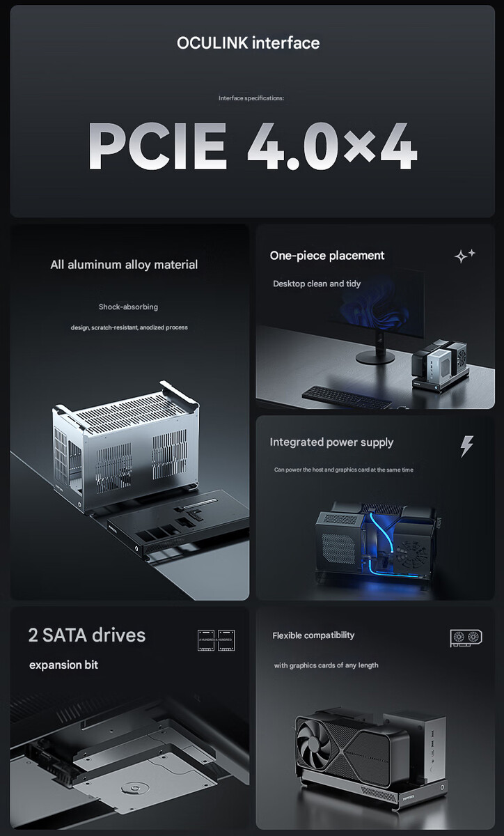 Toutefois, il convient de noter que l'alimentation du mini PC ne dépasse pas 140 W. Pour la connectivité, les stations d'accueil Topfeel G1 et G1 Pro s'appuient sur OCuLink, qui est connu pour réduire la dégradation des performances du GPU par rapport à l'USB4 et au Thunderbolt 5 et même Thunderbolt 5.