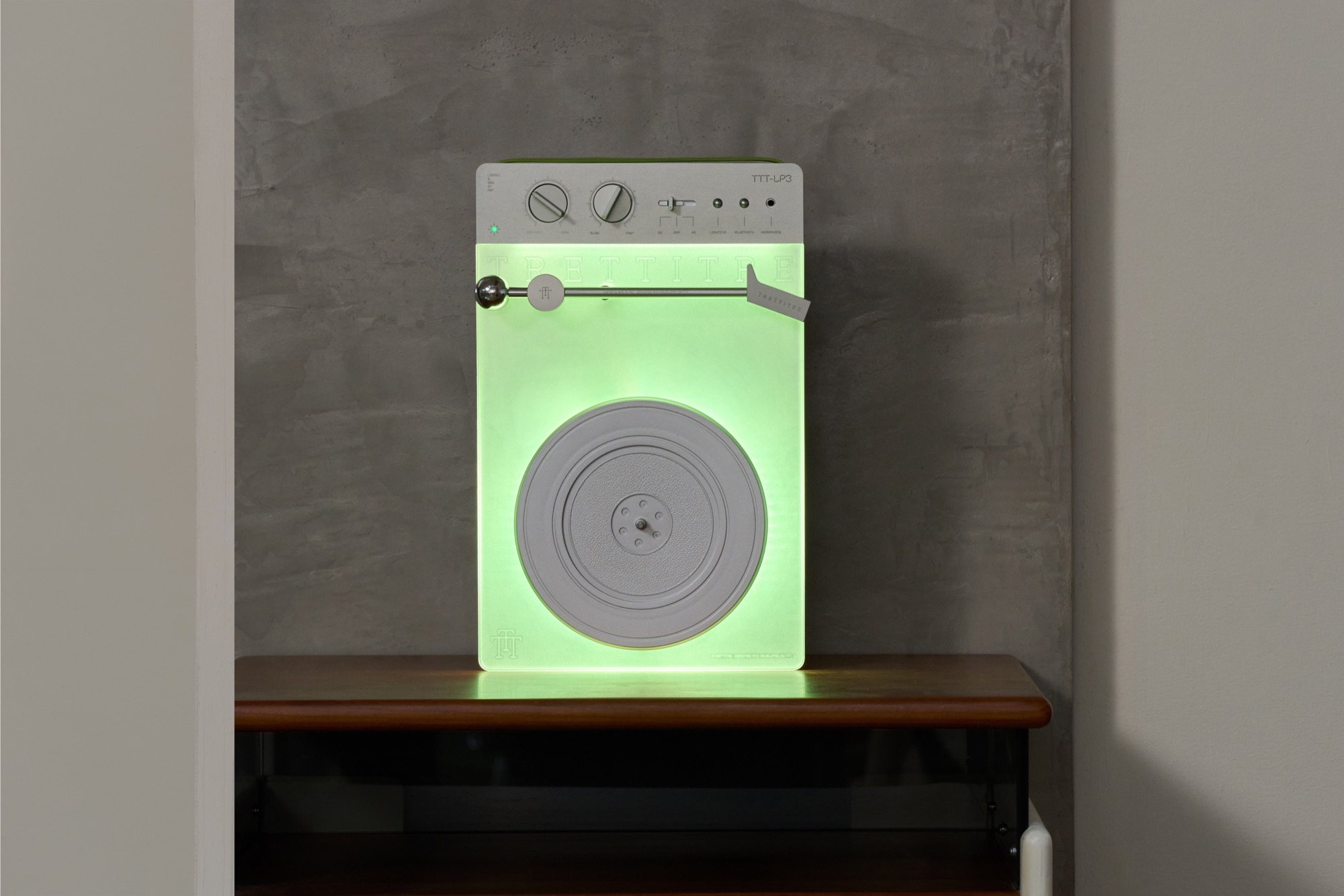 Ce tourne-disque Trettitre TTT-LP3 est sans fil et équipé d'une batterie. Il est possible de lire des disques aussi bien à la verticale sur le support mural qu'à l'horizontale sur une table. Le son peut être transmis sans fil via Bluetooth 5.3 à un haut-parleur ou à un casque, avec prise en charge de Qualcomm aptX HD. Une prise AUX de 3,5 mm est également disponible. Le support mural permet de recharger le lecteur et la batterie intégrée a une autonomie de six heures.