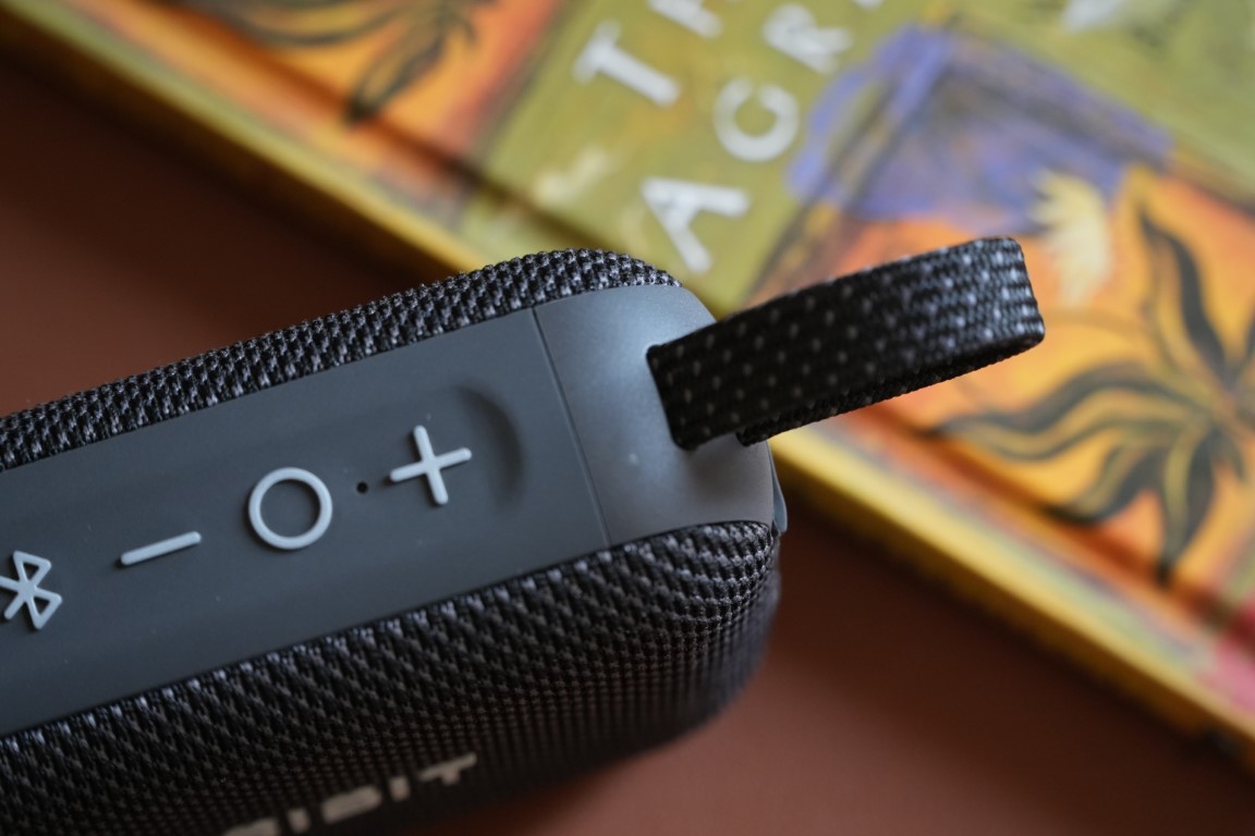 Enveloppée d'un revêtement en maille, l'enceinte a un aspect très haut de gamme et élégant. J'ai beaucoup aimé la position des boutons du PocketGo. Contrairement au GO 4, Tribit a réussi à placer l'ensemble des boutons sur le dessus de l'enceinte. Vous pouvez allumer/éteindre, contrôler le volume, jouer et mettre en pause, et contrôler le Bluetooth à partir de l'enceinte. Malheureusement, vous ne pouvez pas sauter de chansons directement depuis l'enceinte, ce qui est légèrement décevant.