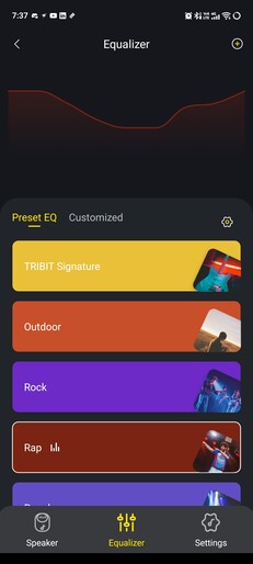 J'ai testé l'enceinte avec différents genres musicaux, notamment le rock, le jazz, la pop, la musique classique, le rap et le R&B. Honnêtement, le résultat m'a semblé très correct. Par défaut, l'enceinte utilise le réglage d'égalisation "Tribit Signature", qui sonne un peu plat. Cependant, les choses ont changé lorsque j'ai essayé plusieurs autres préréglages et quelques réglages d'égalisation personnalisés dans l'application Tribit, et cela a fait une grande différence.