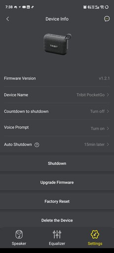 Le PocketGo prend également en charge l'application compagnon Tribit, gratuite et disponible pour les appareils Android et iOS. L'application est assez simple, offrant six modes d'égalisation préréglés (signature Tribit, rock, rap, extérieur, populaire et livre audio), des réglages d'égalisation personnalisés et quelques personnalisations. En outre, il dispose d'un microphone intégré pour le contrôle de l'assistant vocal, qui est compatible avec Siri, Alexa et Google Assistant.