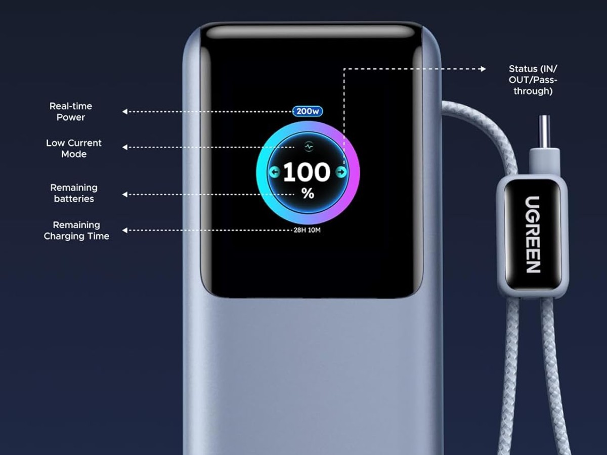 Ugreen lance une nouvelle banque d'énergie de 25 000 mAh avec deux câbles intégrés et un écran intelligent