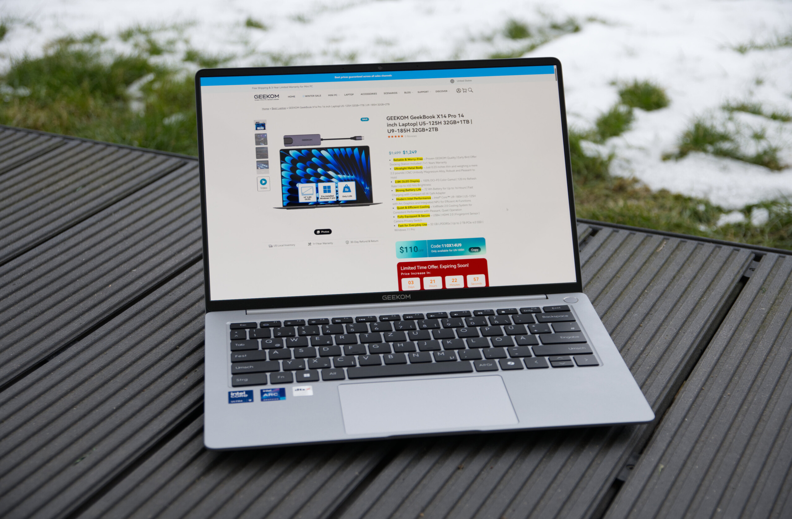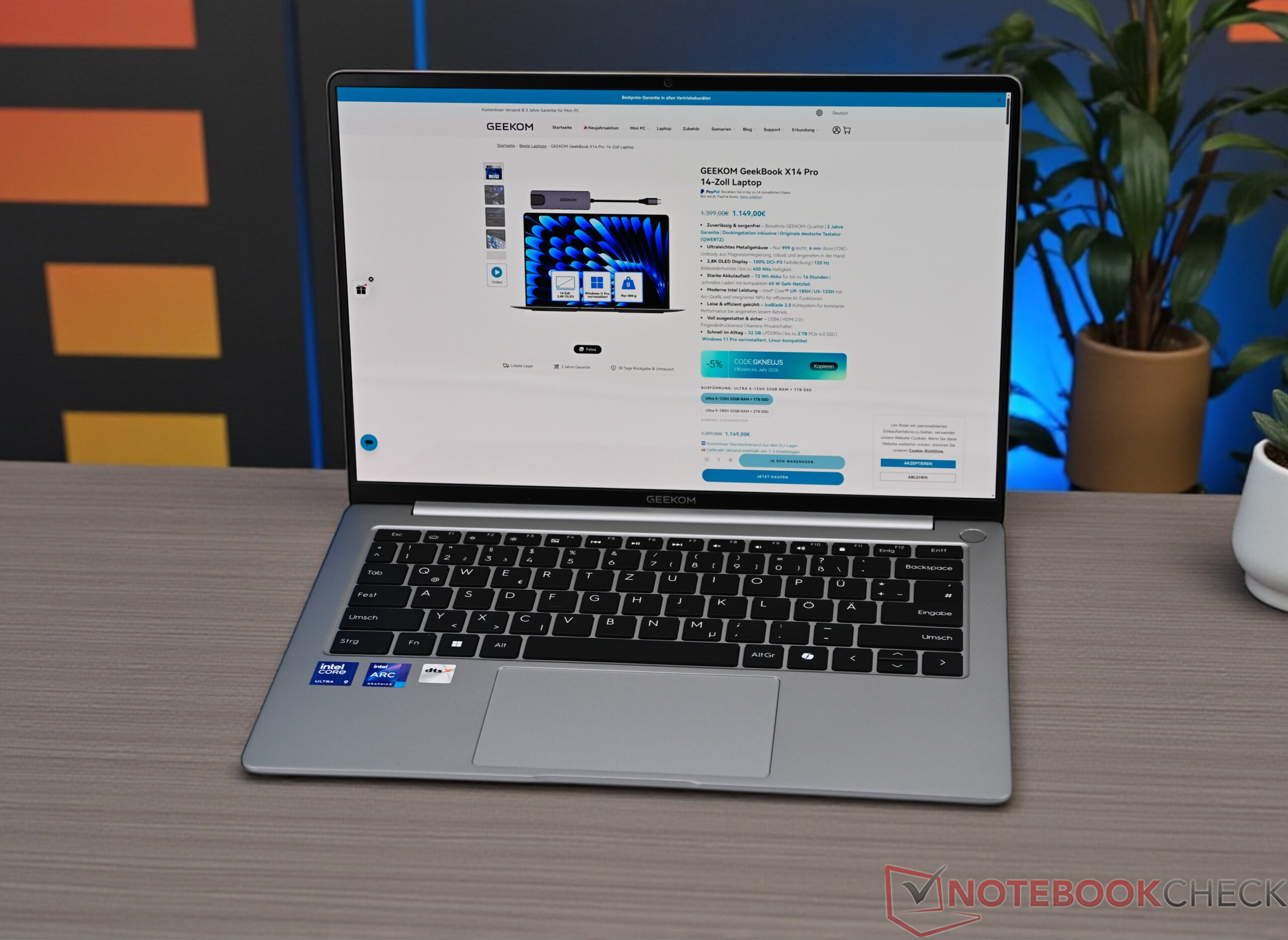 | Geekom GeekBook X14 Pro Intel Core Ultra 9 185H ⎘ Intel Arc 8-Core iGPU ⎘ 32 Go Mémoire, 2000 Go SSD | Amazon: Prix de liste: 1599€ | 1 kg | 20 mm | 14.00" 2880x1800 243 PPI OLED | |