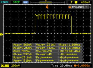 Le rétroéclairage de l'écran scintille à la fréquence de 122 Hz (certainement du fait de l'utilisation d'une MDI - Modulation de largeur d'impulsion) à un niveau de luminosité inférieur ou égal à 100 % . Aucun scintillement ne devrait être perceptible au-dessus de cette valeur. La fréquence de rafraîchissement de 122 Hz est extrêmement faible, de grands risques de fatigue oculaire accrue et de maux de tête en cas d'utilisation prolongée. En comparaison, 53 % des appareils testés n'emploient pas MDI pour assombrir leur écran. Nous avons relevé une moyenne à 8023 (minimum : 5 - maximum : 343500) Hz dans le cas où une MDI était active. | |||