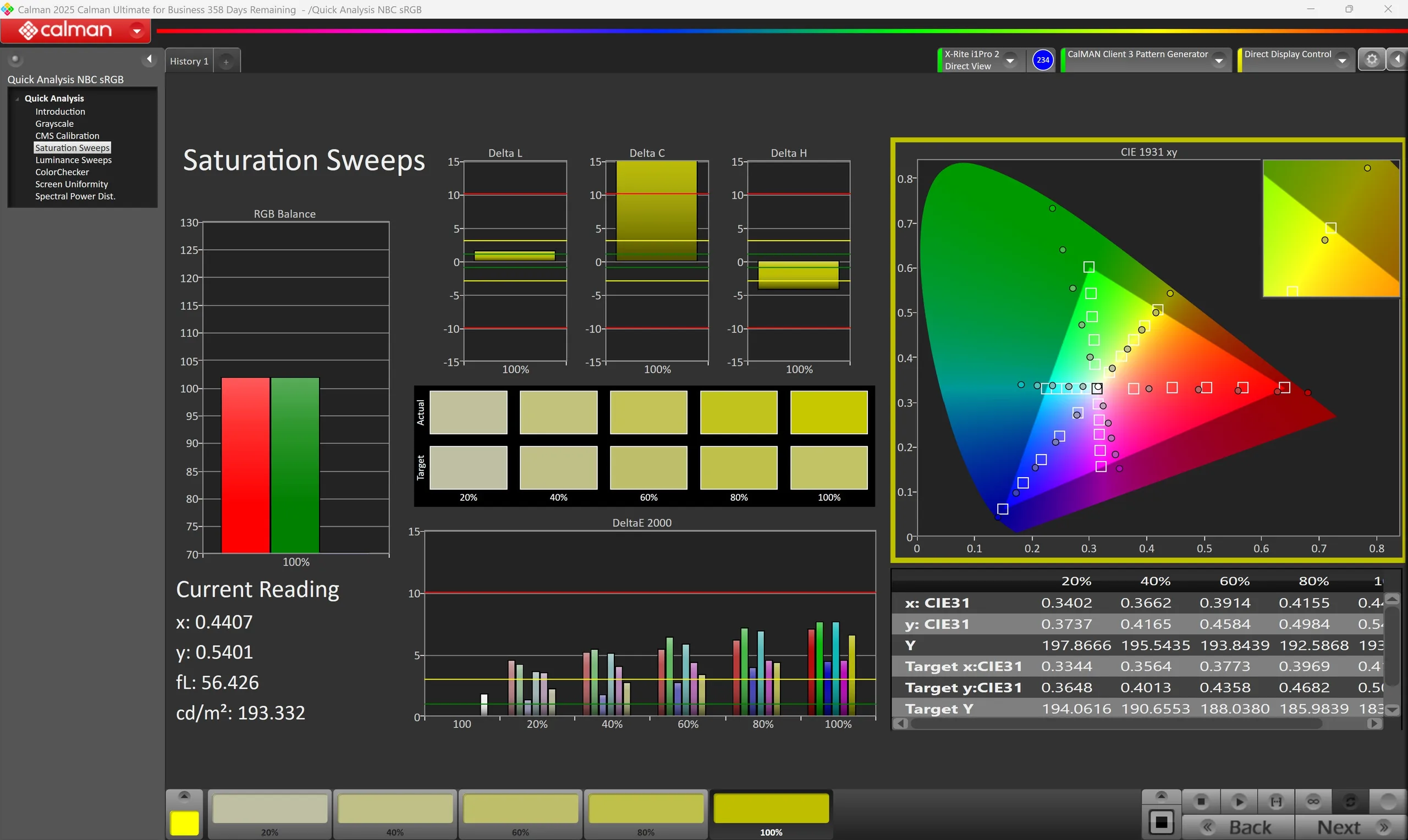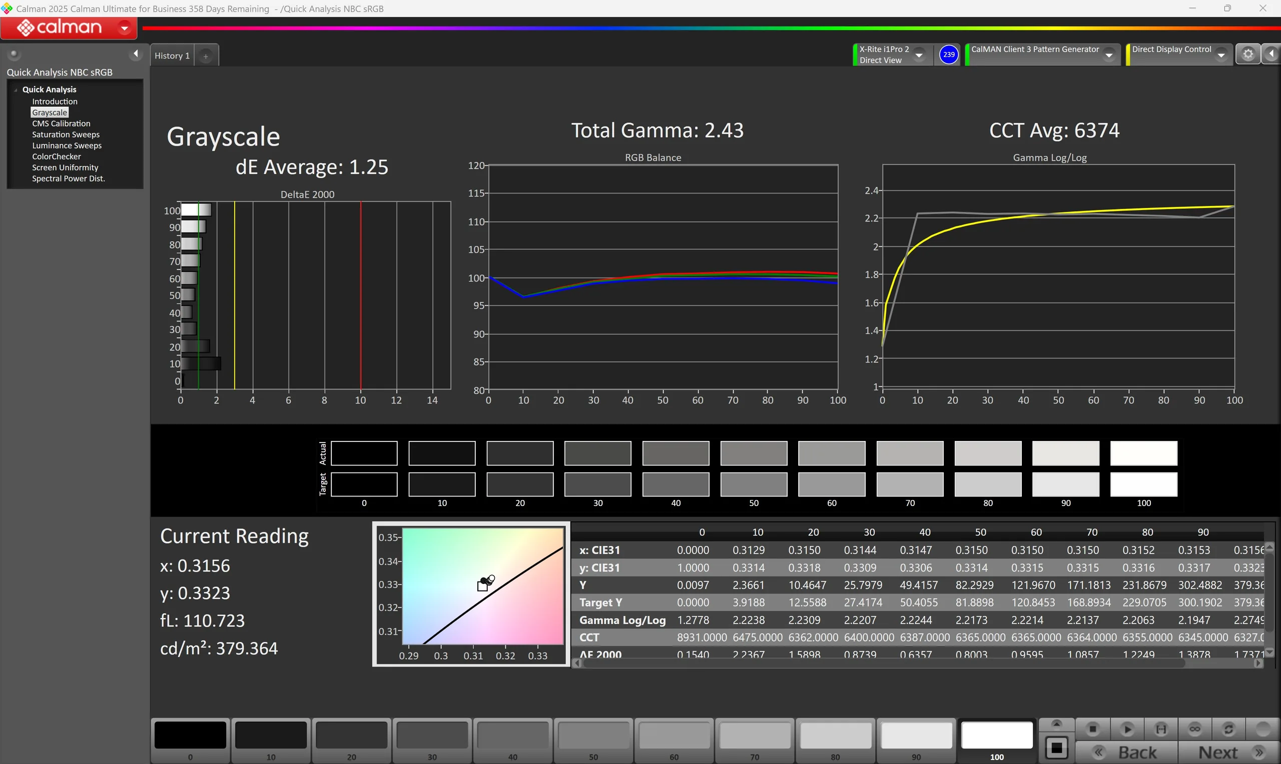 ΔE Greyscale Calman: 1.25 | ∀{0.09-98 Ø5}