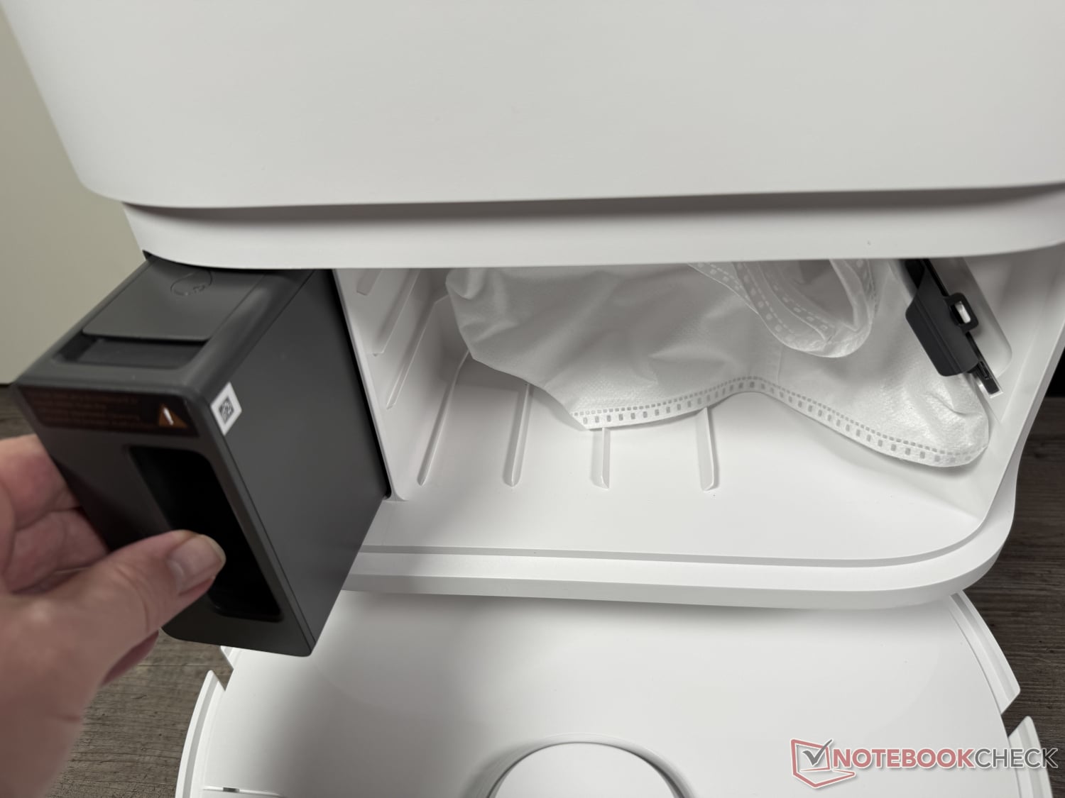 Une autre nouveauté est le tableau sec AceClean dans le PowerDock multifonctionnel, mince mais haut. Il nettoie désormais les mops plus en profondeur grâce à 20 buses de pulvérisation et se nettoie lui-même, ce qui fonctionne de manière satisfaisante selon nos impressions de test. Cependant, l'eau froide est toujours utilisée, alors que de nombreux modèles plus chers utilisent de l'eau chaude pour le nettoyage des serpillières. Ce nettoyage est suivi du processus de séchage habituel à l'air chaud.