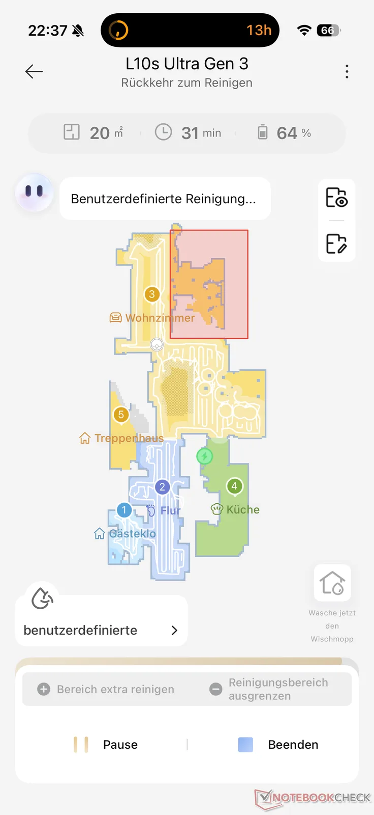 En termes de navigation, le Dreame L10s Ultra Gen 3 a laissé une impression plus que solide lors du test. La navigation dans l'environnement de test s'est déroulée sans problème majeur, même dans les passages étroits. Le robot aspirateur et serpillière n'a pas été l'un des plus rapides du test en termes de temps de nettoyage, mais il a finalement nettoyé systématiquement et en profondeur. Il n'y a donc pas lieu de se plaindre.