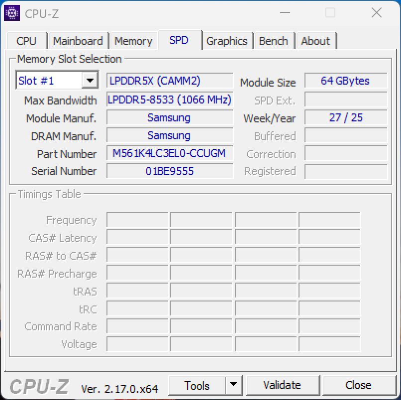 Dans l'ensemble, les options de maintenance sont bonnes, et la RAM peut être remplacée grâce à un module CAMM2, bien que la capacité maximale supportée soit limitée à 64 Go. Il y a également deux emplacements pour SSD M.2-2280 (PCIe 5.0), et la batterie peut également être remplacée. Le module Wi-Fi est quant à lui soudé.
