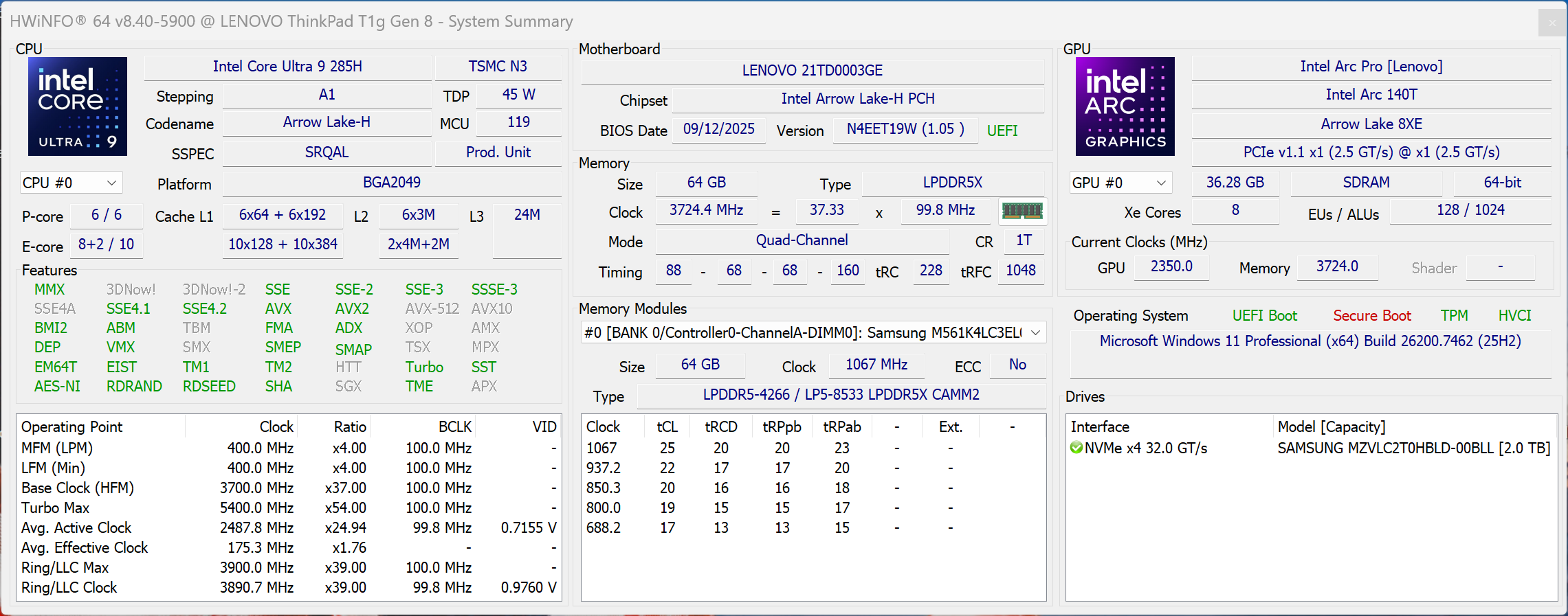 | Lenovo ThinkPad T1g Gen 8 21TD003GE Intel Core Ultra 9 285H ⎘ NVIDIA GeForce RTX 5070 Laptop ⎘ 64 Go Mémoire, 2048 Go SSD | Amazon: 1. $3,839.06 Lenovo ThinkPad T1g Gen 8 21... 2. $3,099.99 Lenovo ThinkPad P1 Gen 7 Wor... 3. $5,532.00 Lenovo ThinkPad T1g Gen 8 21... Prix de liste: 4500€ | 1.9 kg | 15.8 mm | 16.00" 3200x2000 236 PPI Tandem-OLED | |
