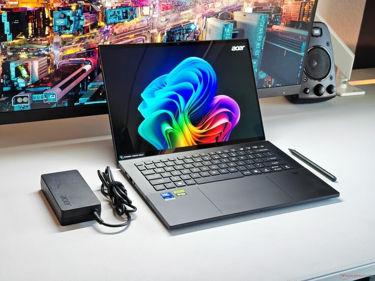 La batterie de 76 Wh permet des durées d'utilisation raisonnables, mais le processeur Lunar Lake n'apporte pas vraiment d'avantage. Avec 9 heures dans le test WLAN à 150 cd/m² et 6:45 heures à pleine luminosité, l'Acer est juste devant le Razer Blade 14 (72 Wh), mais aussi clairement derrière le ROG Zephyrus G14 (73 Wh).