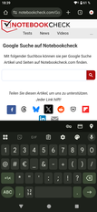 L'écran tactile, avec un taux d'échantillonnage de 120 Hz, répond sans délai. Les animations et le défilement dans les menus sont généralement fluides grâce à l'écran 120 Hz, même si des saccades apparaissent de temps à autre. Les vibrations sont également peu convaincantes et très spongieuses avec le moteur ERM intégré.