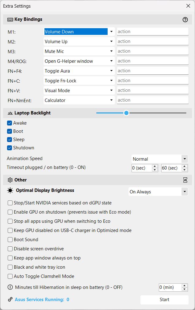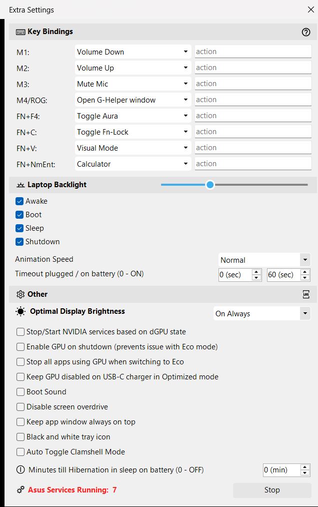 - G-Helper permet aux utilisateurs d'assigner librement les quatre boutons matériels supplémentaires que l'on trouve sur de nombreux ordinateurs portables Asus. Il est ainsi enfin possible d'affecter une touche d'écran d'impression, qui manque inexplicablement sur de nombreux claviers de jeu.