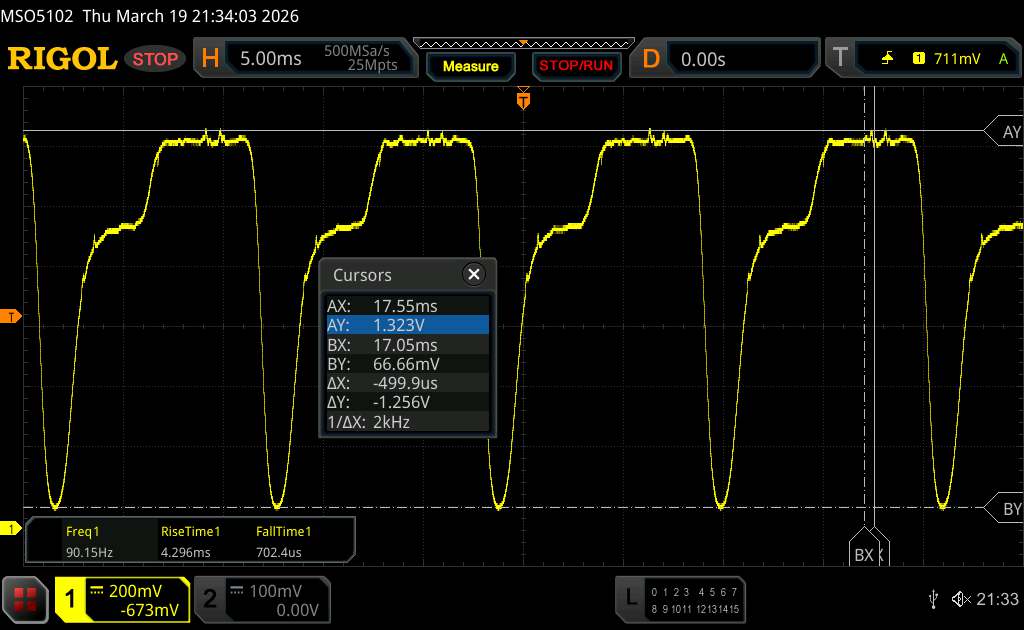 | Scintillement / MLI (Modulation de largeur d'impulsion) décelé | 90 Hz Amplitude: 17.24 % Secondary Frequency: 2000 Hz | ||