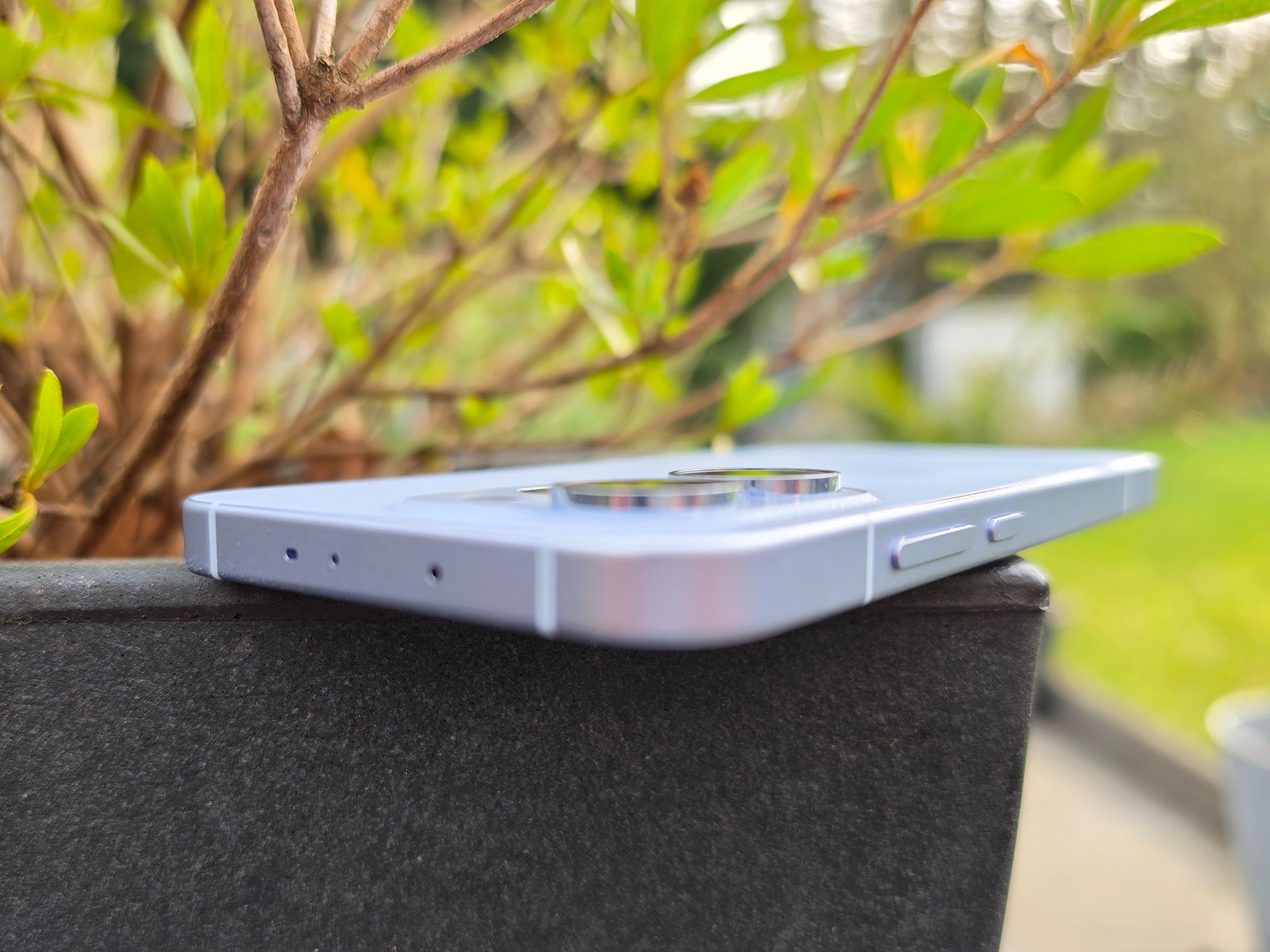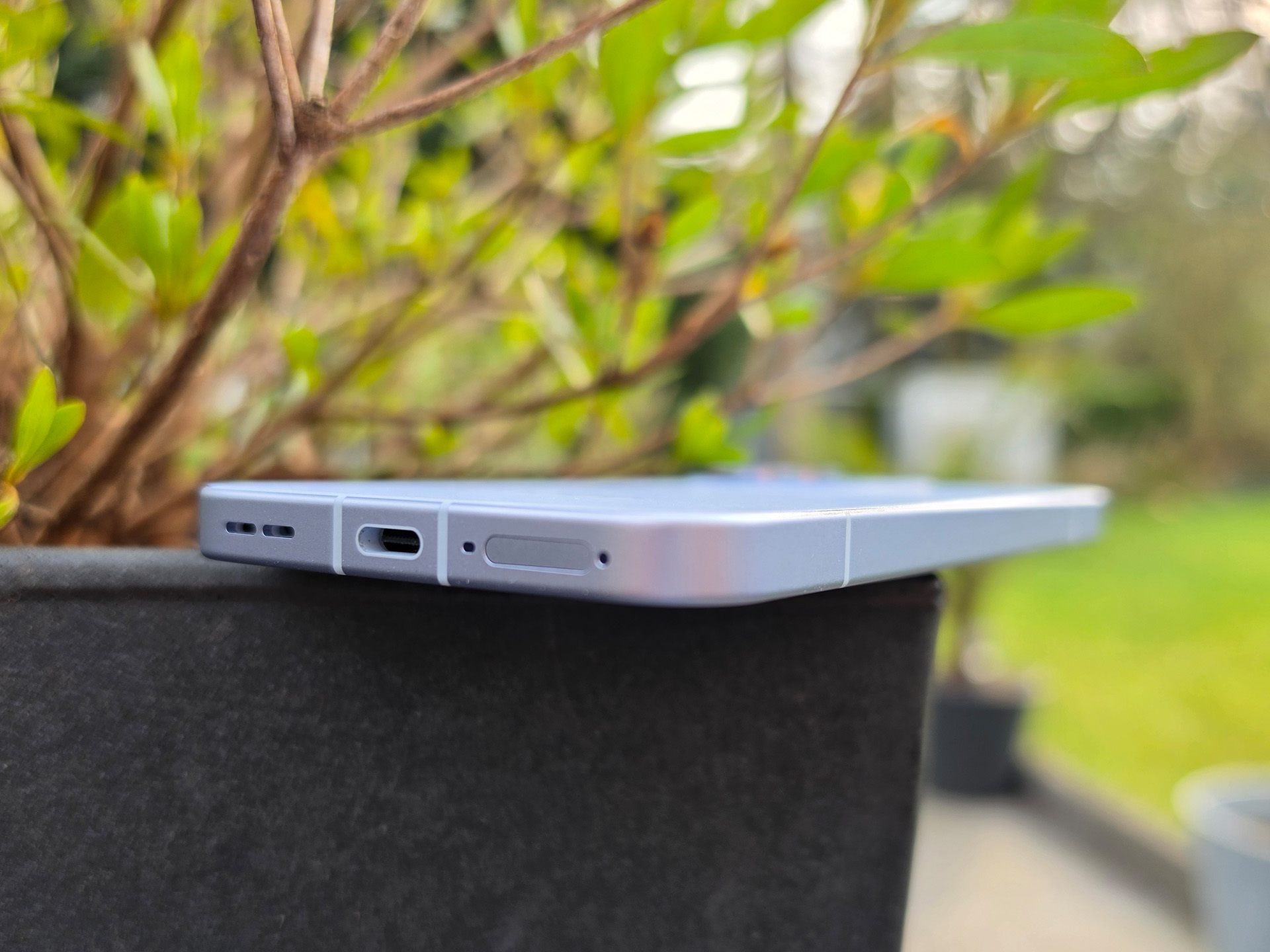 Le cadre en aluminium mat est résistant aux traces de doigts, tandis que l'écran est protégé par le verre Gorilla Glass 7i. Bien que le panneau arrière soit en plastique, il est bien exécuté et visuellement attrayant. Dans l'ensemble, la qualité de fabrication est convaincante et le smartphone est certifié IP68, ce qui le rend résistant à la poussière et à l'eau.