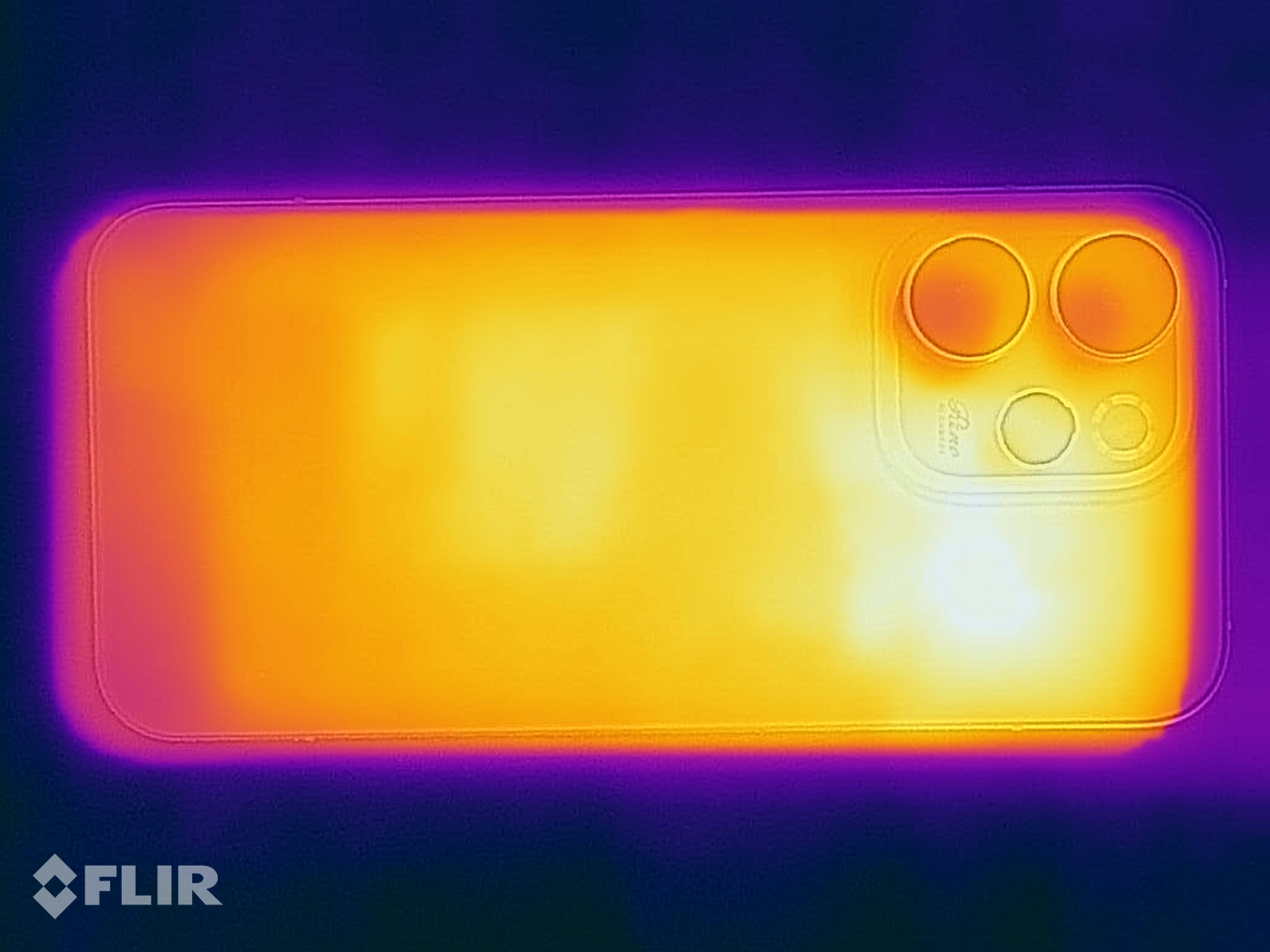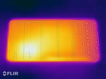 (-) La température maximale du côté supérieur est de 45.1 °C / 113 F, par rapport à la moyenne de 35.2 °C / 95 F, allant de 21.9 à 247 °C pour la classe Smartphone.