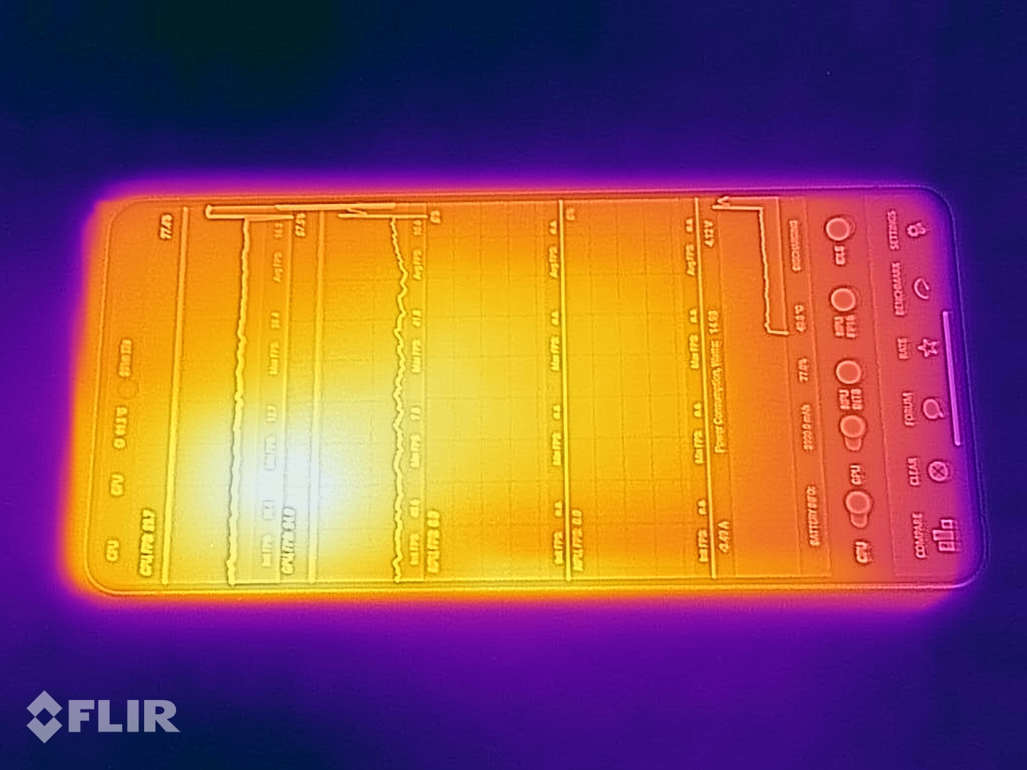 Les températures de surface augmentent sensiblement sous charge, mais restent dans une fourchette de sécurité. En revanche, le test de stress 3DMark montre un ralentissement assez prononcé.