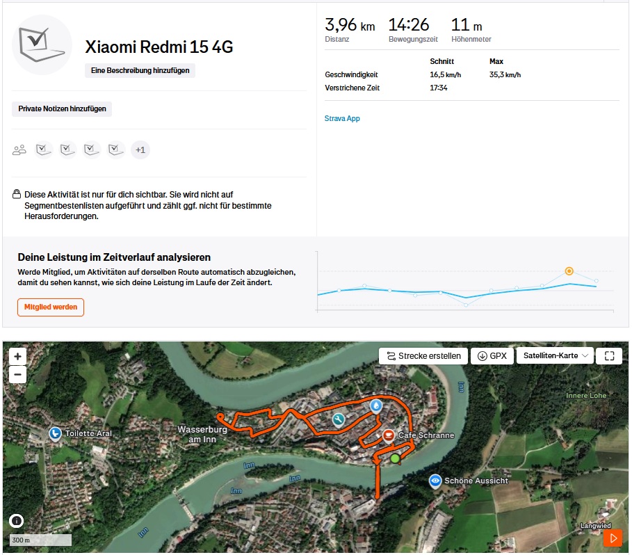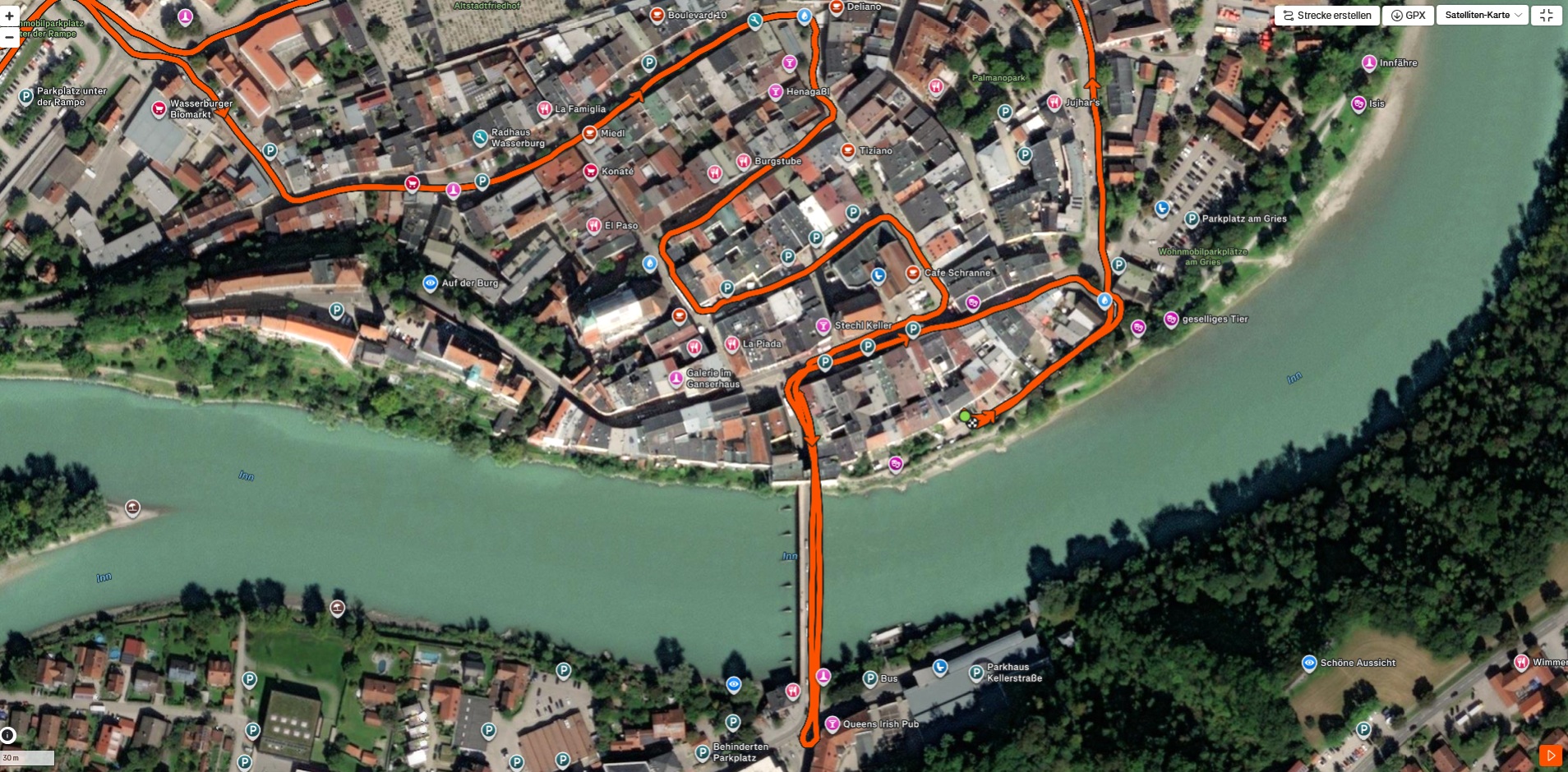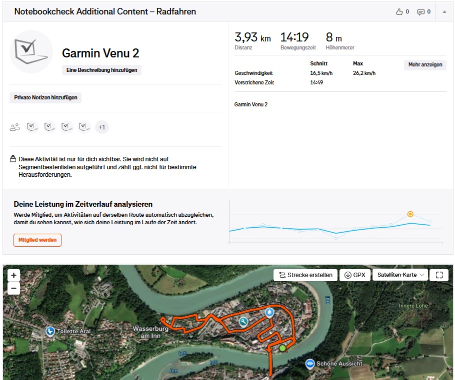 Que ce soit dans les rues étroites des vieilles villes ou dans les zones moins densément bâties, l'appareil maintient presque systématiquement la ligne idéale et, dans l'ensemble, il est presque aussi précis que l'appareil de comparaison, le Garmin Venu 2.