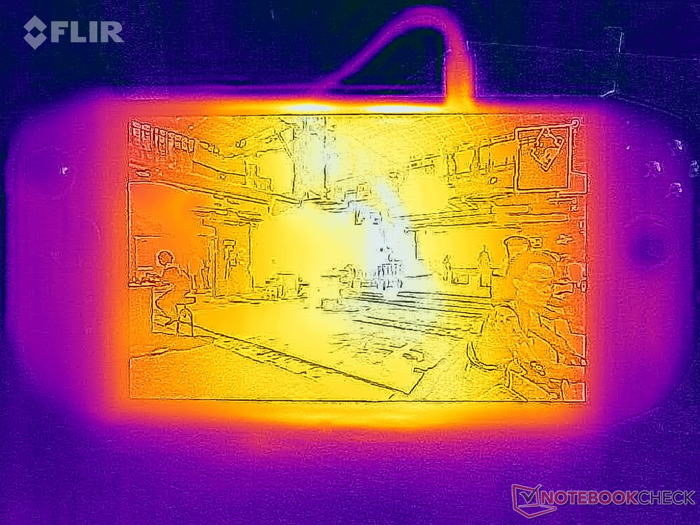 (±) En utilisation inactive, la température moyenne du côté supérieur est de 35.1 °C / 95 F, par rapport à la moyenne du dispositif de 32.8 °C / 91 F.