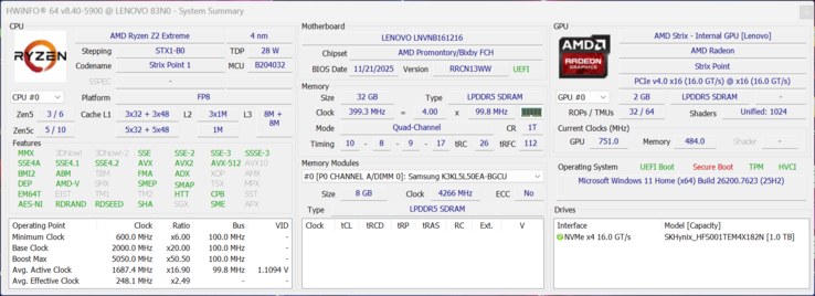 | Lenovo Legion Go 2 Ryzen Z2 Extreme, Radeon 890M, 74 Wh | Asus ROG Xbox Ally X Ryzen Z2 Extreme, Radeon 890M, 80 Wh | MSI Claw A8 BZ2EM Ryzen Z2 Extreme, Radeon 890M, 80 Wh | ONEXPLAYER X1 Pro GA15H-HX370-32GB-1TB-H Ryzen AI 9 HX 370, Radeon 890M, 65 Wh | GPD Pocket 4 Ryzen AI 9 HX 370, Radeon 890M, 45 Wh | MSI Claw 8 AI+ Core Ultra 7 258V, Arc 140V, 80 Wh | Lenovo Legion Go Z1 Extreme, Radeon 780M, 49.2 Wh | Moyenne de la classe Handheld / UMPC | |