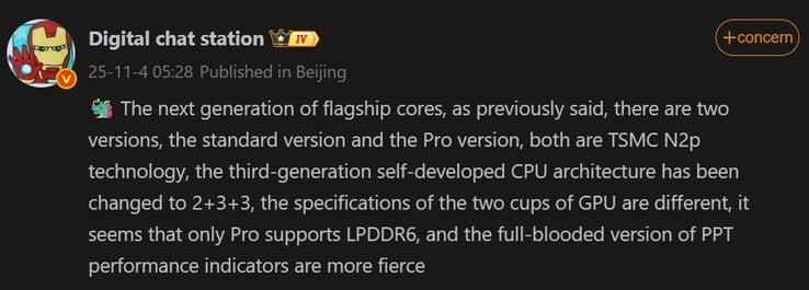 DCS affirme que les deux nouveaux processeurs mobiles utiliseront la même architecture de troisième génération. Ils utiliseront également le même processus de fabrication TSMC N2P. Le Pro, cependant, aura des caractéristiques plus musclées, notamment des capacités GPU plus élevées et la prise en charge de la mémoire LPDDR6.