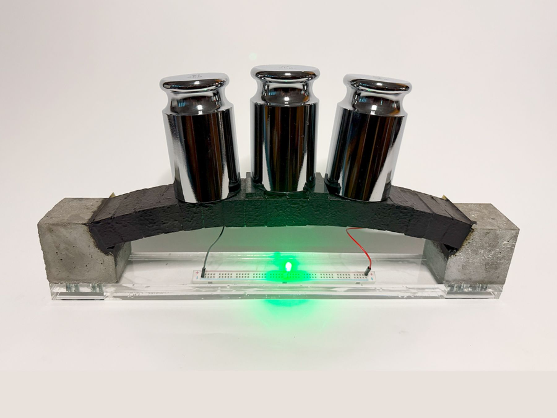Les scientifiques ont découvert que l'eau de mer peut être utilisée comme un électrolyte viable, ce qui montre qu'elle peut être utilisée dans les structures offshore. Ils ont également démontré qu'elle pouvait être utilisée pour le contrôle de la santé des structures en utilisant une arche de 9 volts fabriquée à partir du matériau pour alimenter une LED qui clignotait lorsque l'arche était soumise à une contrainte physique.