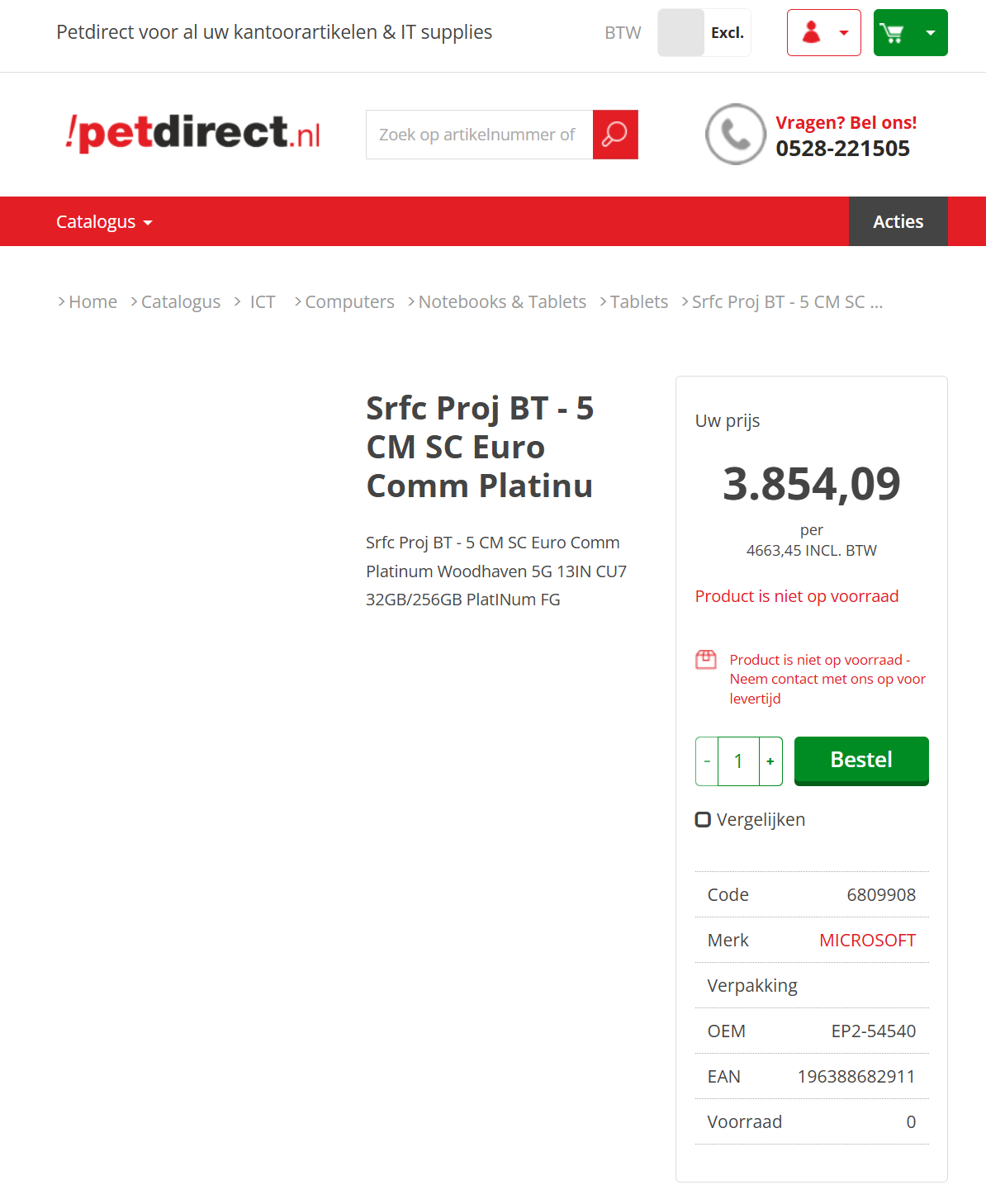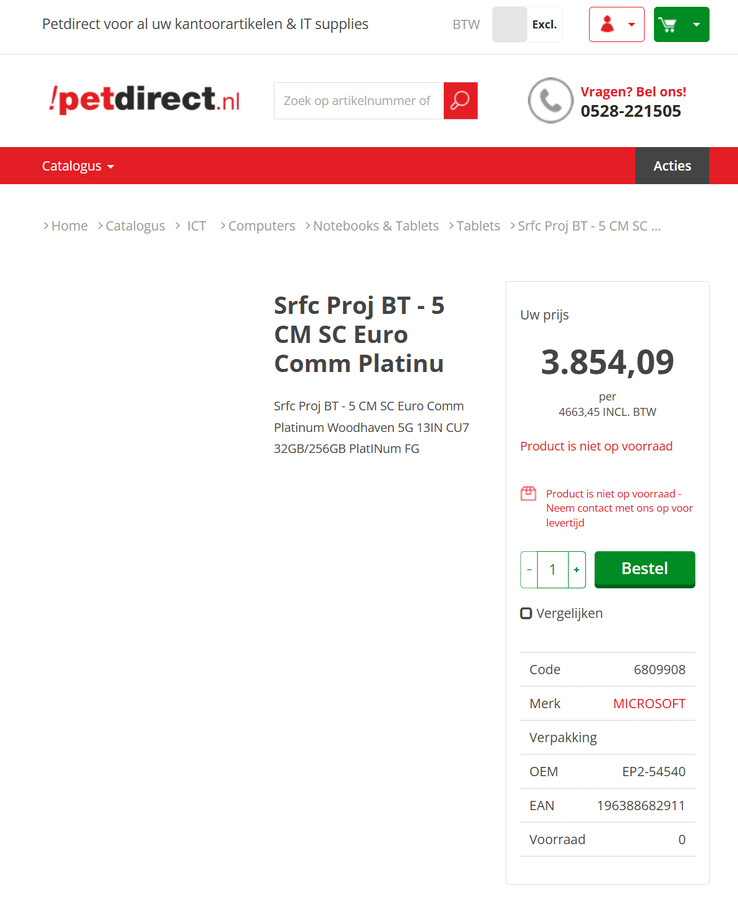 Aujourd'hui, il semble que l'un de ces nouveaux appareils Surface soit apparu sur le site du détaillant néerlandais Petdirect. À première vue, l'annonce de Petdirect est plutôt obscure. Cependant, Quandt a ajouté que "Woodhaven" est le nom de code de Microsoft pour sa prochaine version Surface Pro "for Business".