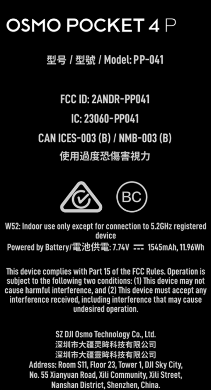 La FCC n'a pas encore révélé à quoi ressemble l'Osmo Pocket 4 Pro. Au lieu de cela, l'organisme de réglementation a accepté de ne pas publier de photos avant la fin du mois de juin 2026. En attendant, la FCC a confirmé que l'Osmo Pocket 4 Pro utilise une batterie de 1 545 mAh (7,7 V). Bien qu'il s'agisse d'une amélioration considérable par rapport à la batterie de 1 300 mAh de l Osmo Pocket 3cette capacité correspond à celle de l'Osmo Pocket 4. Néanmoins, la certification de la FCC confirme que DJI commercialisera l'Osmo Pocket 4 Pro dans le monde entier.