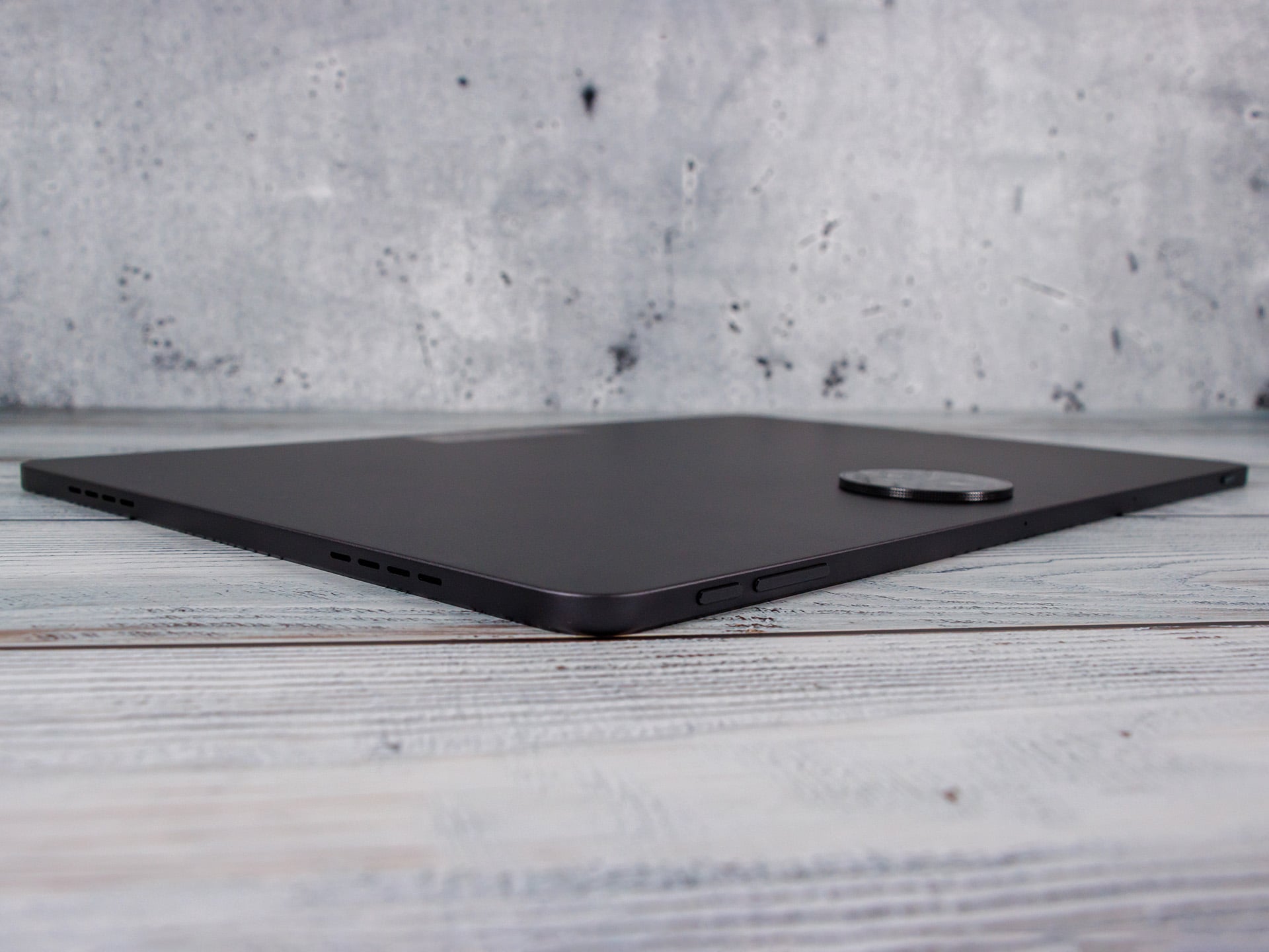 Le poids est assez élevé (760 grammes), mais il n'est pas perceptible dans les deux mains. Les bords durs de l'unibody en aluminium sont plus désagréables. La finition est convaincante et la tablette ne grince pas, même lorsqu'elle est tordue.